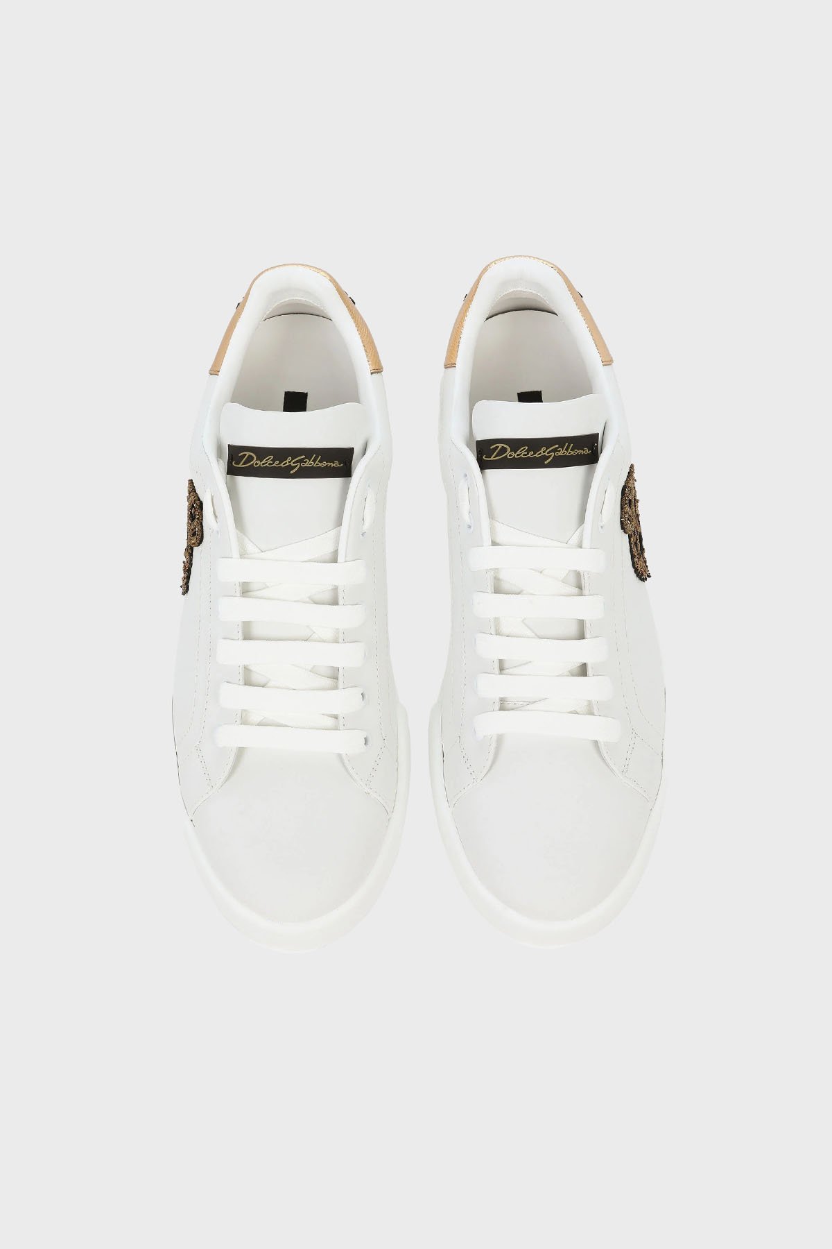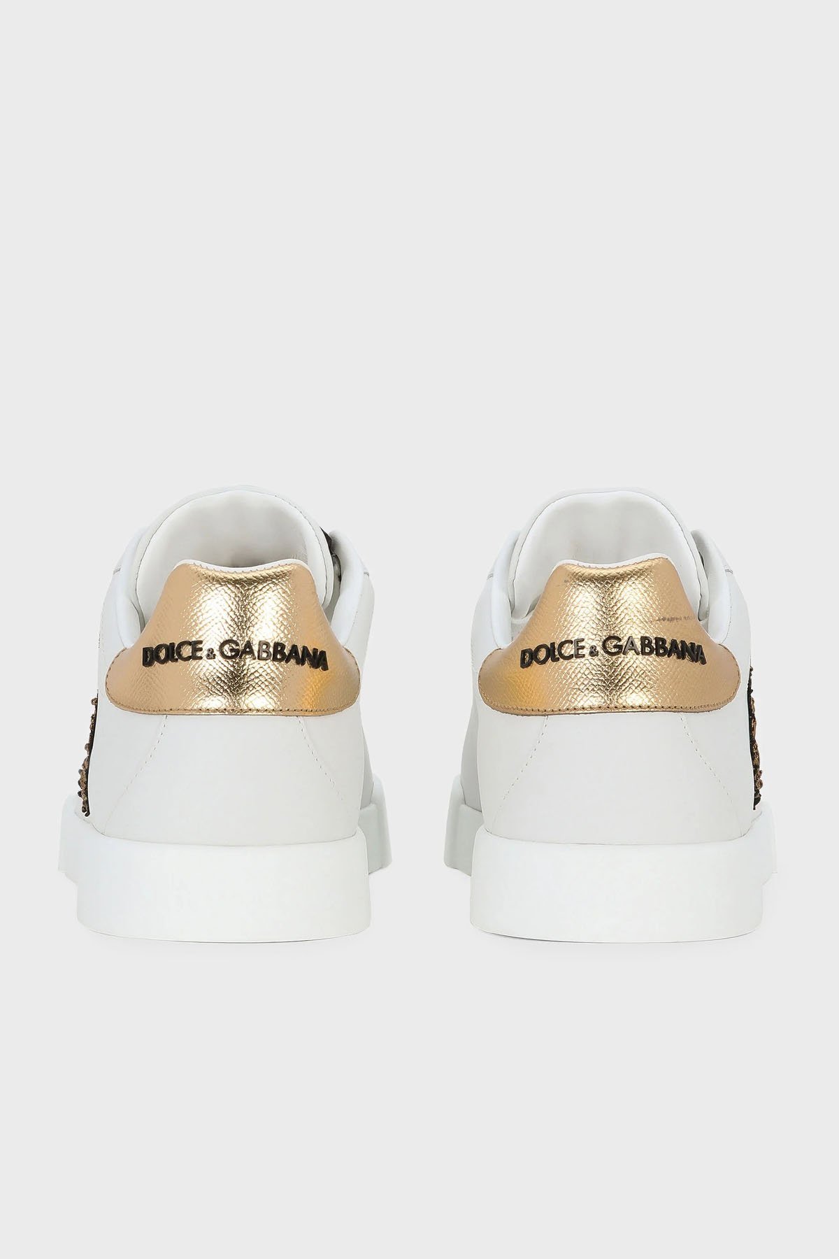 Dolce & Gabbana Taç Logolu Deri Sneaker Erkek Ayakkabı CS2330 AH136 8I047 BEYAZ-GOLD