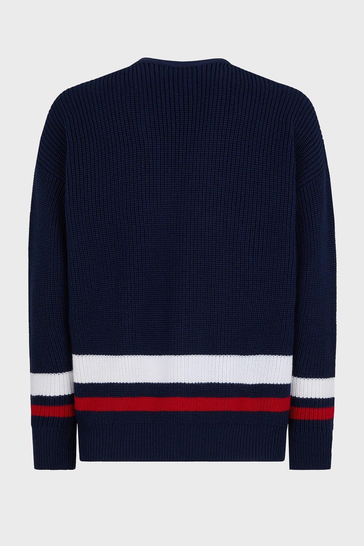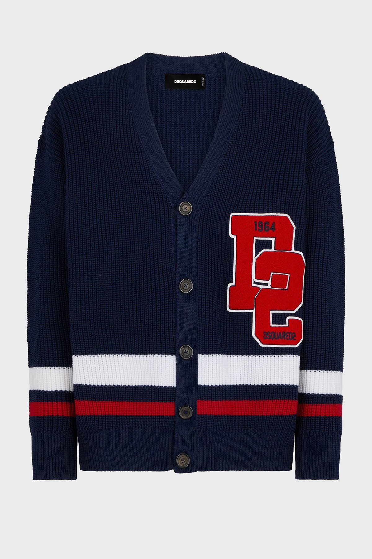 Logolu % 100 Yün Oversize Fit V Yaka Örme Erkek Hırka S74HA1420 S18431 961 LACİVERT