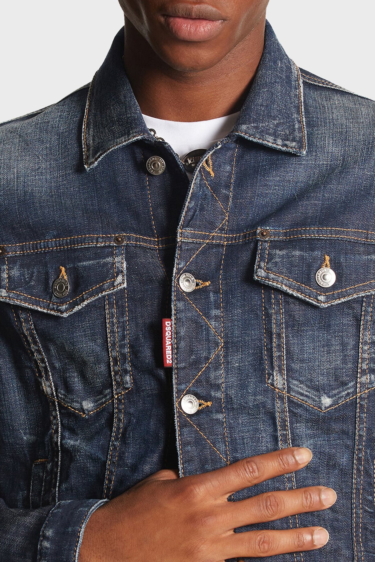 Logolu Streç Pamuklu Slim Fit Erkek Kot Ceket S74AM1470 S30342 470 LACİVERT