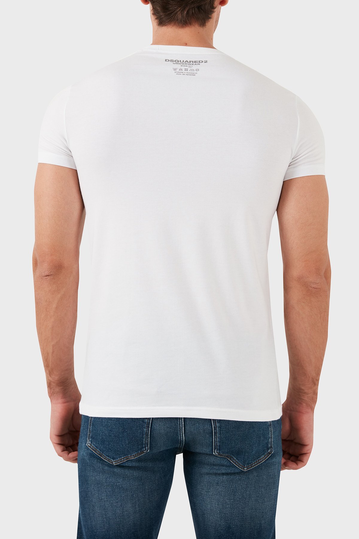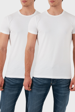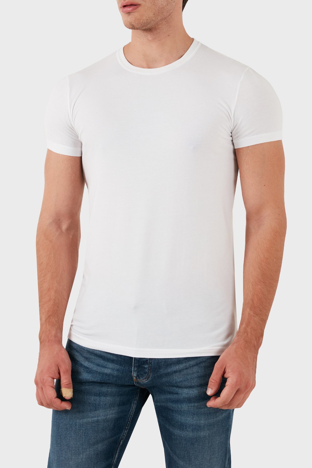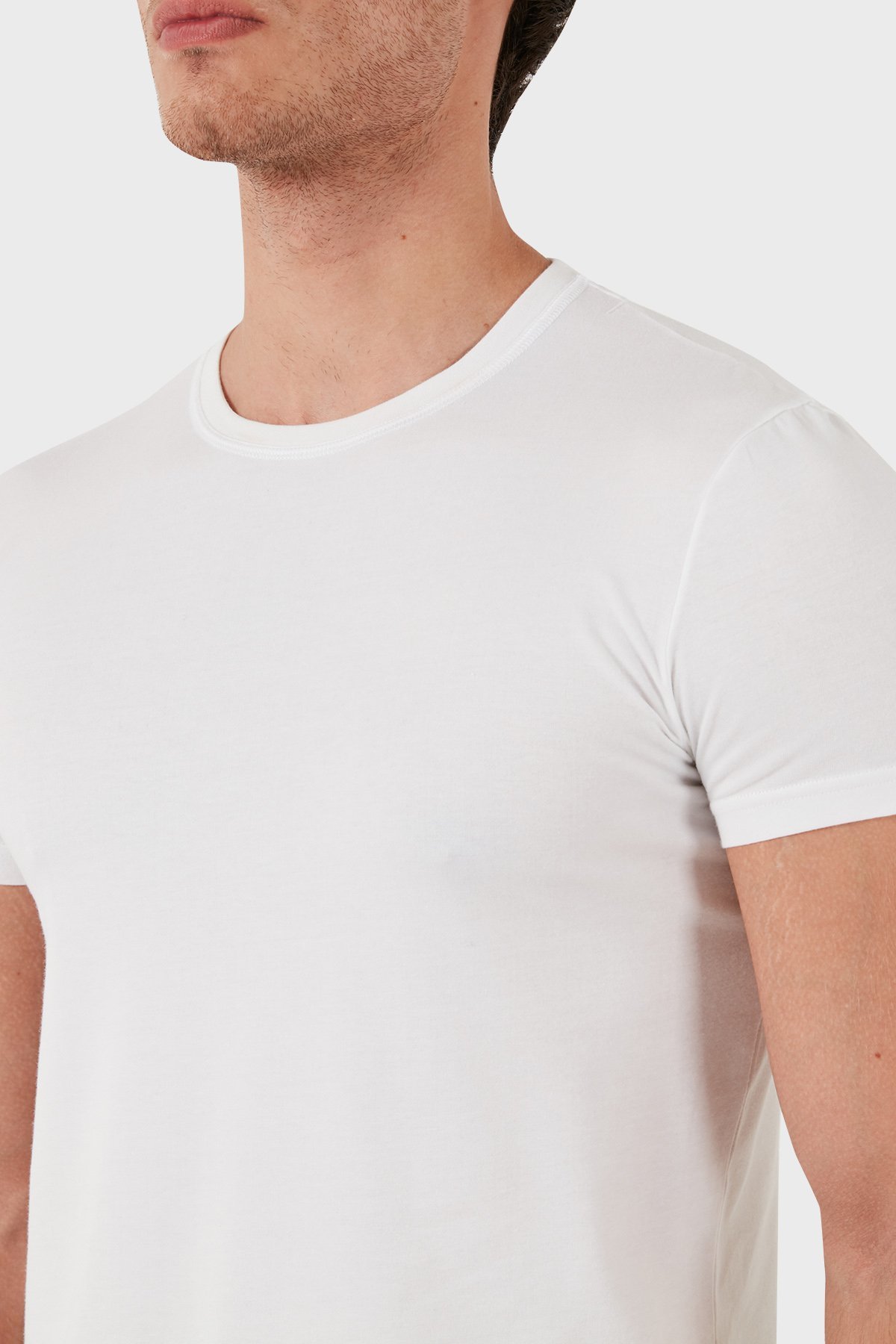 Streç Pamuklu Bisiklet Yaka Slim Fit 2li Erkek T Shirt DCX410020 02 BEYAZ