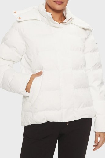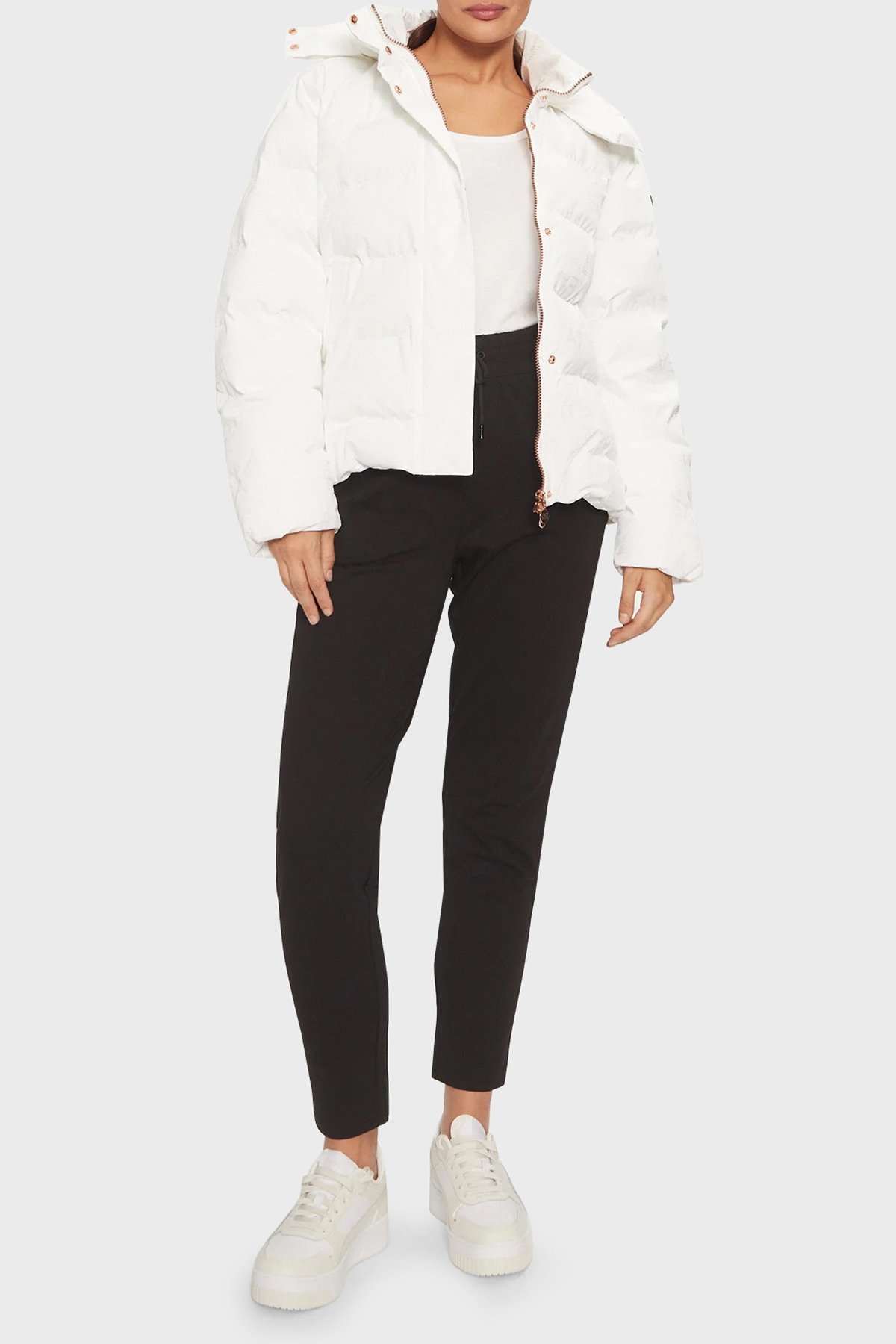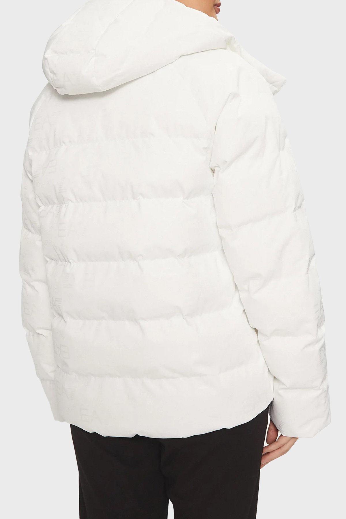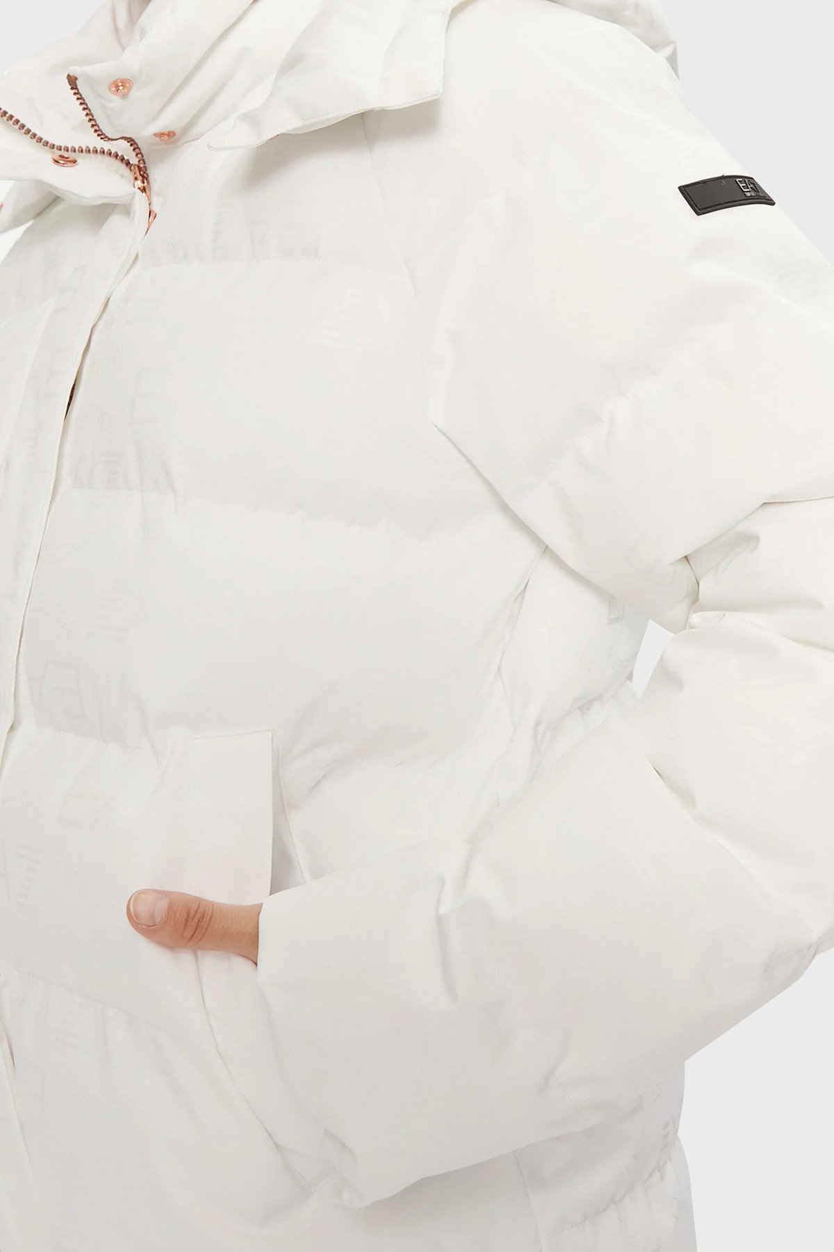 Kapitoneli Monogram Logo Baskılı Kapüşonlu Şişme Bayan Mont 6DTB12 TNGGZ 1100 BEYAZ