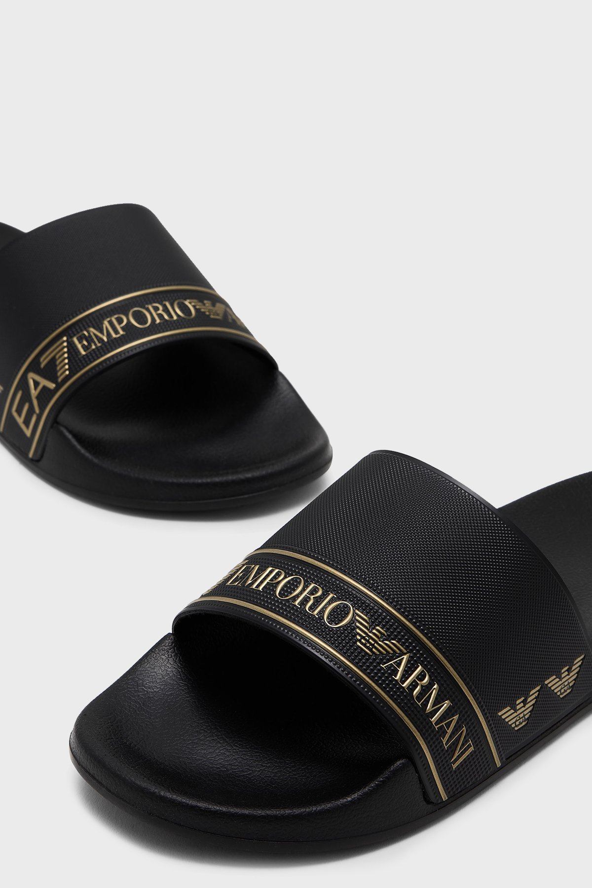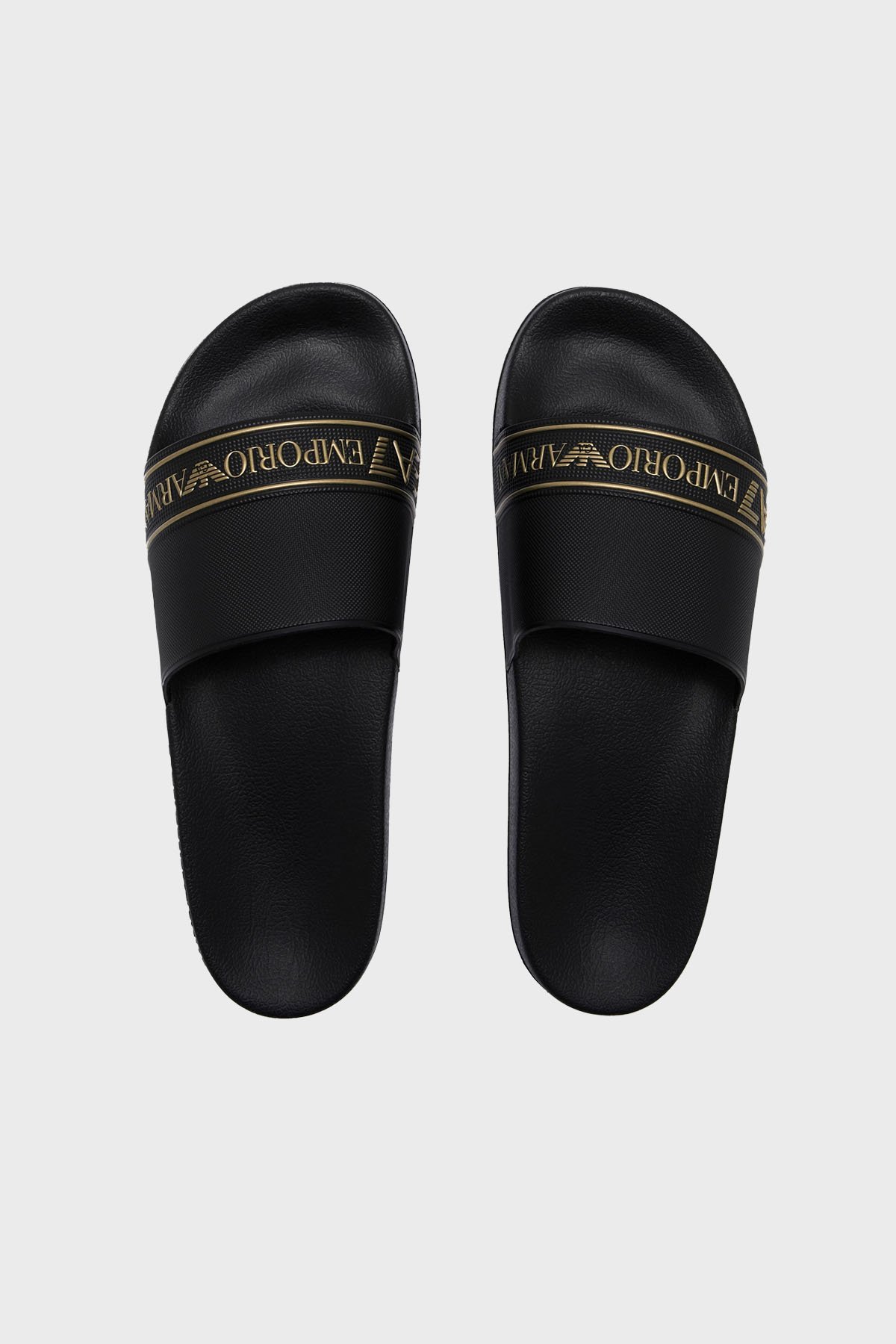 Logo Baskılı Şerit Detaylı Unisex Terlik 7X000110 AF15128 MC139 SİYAH-GOLD