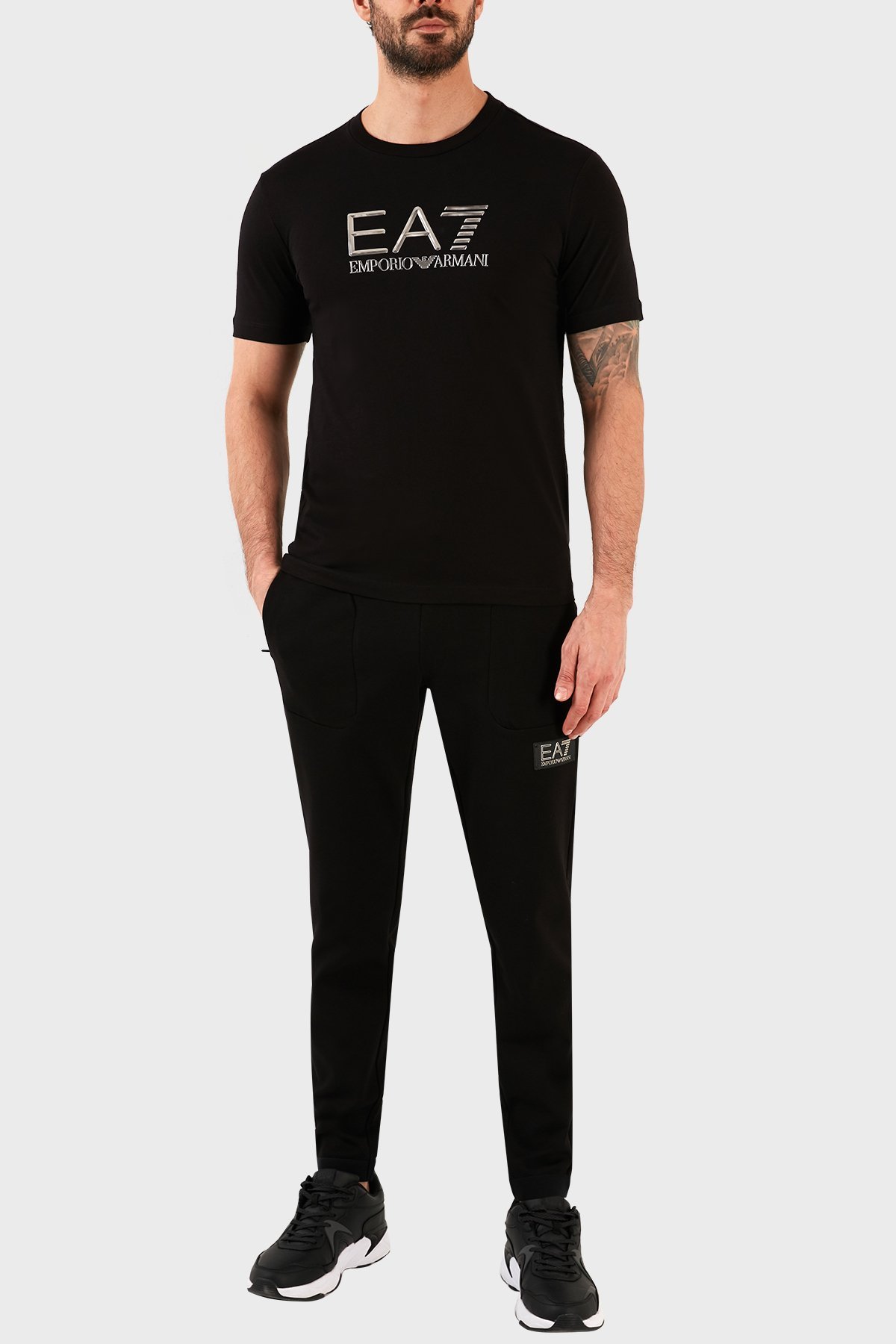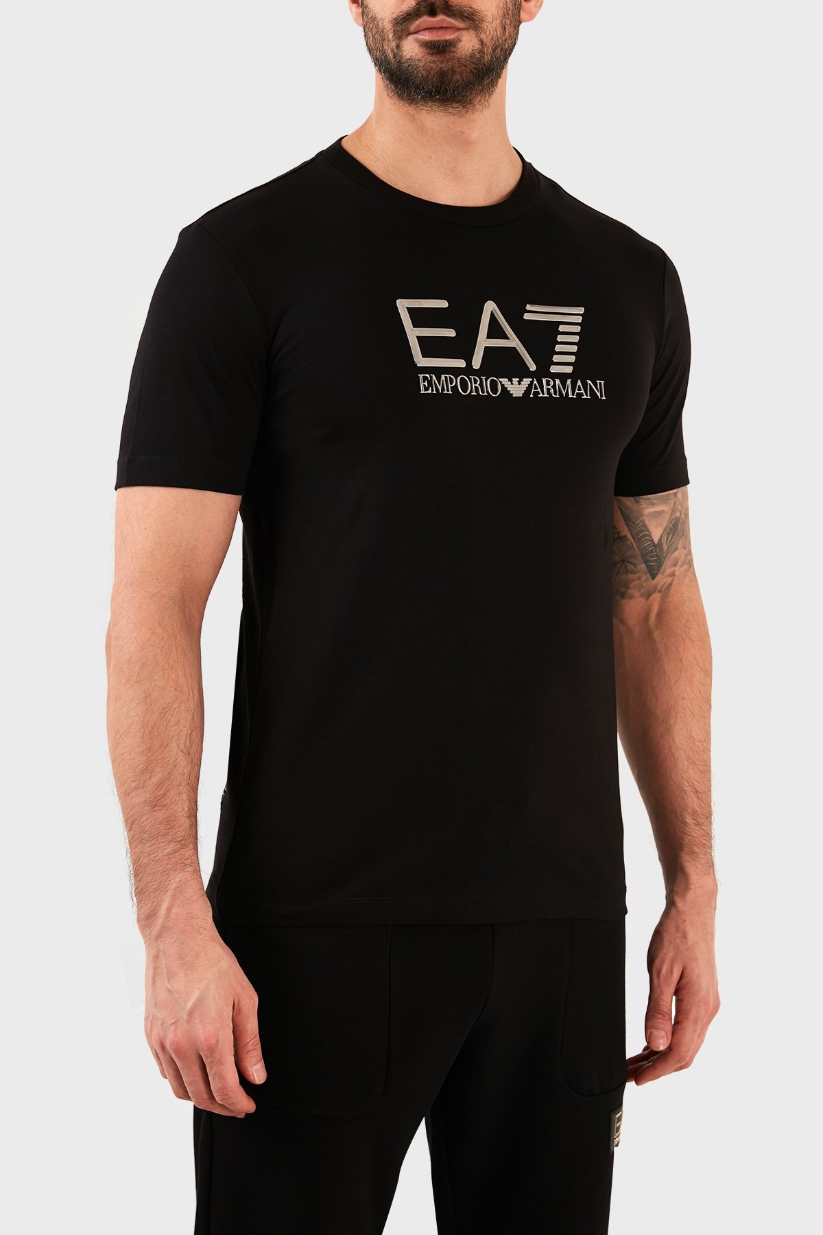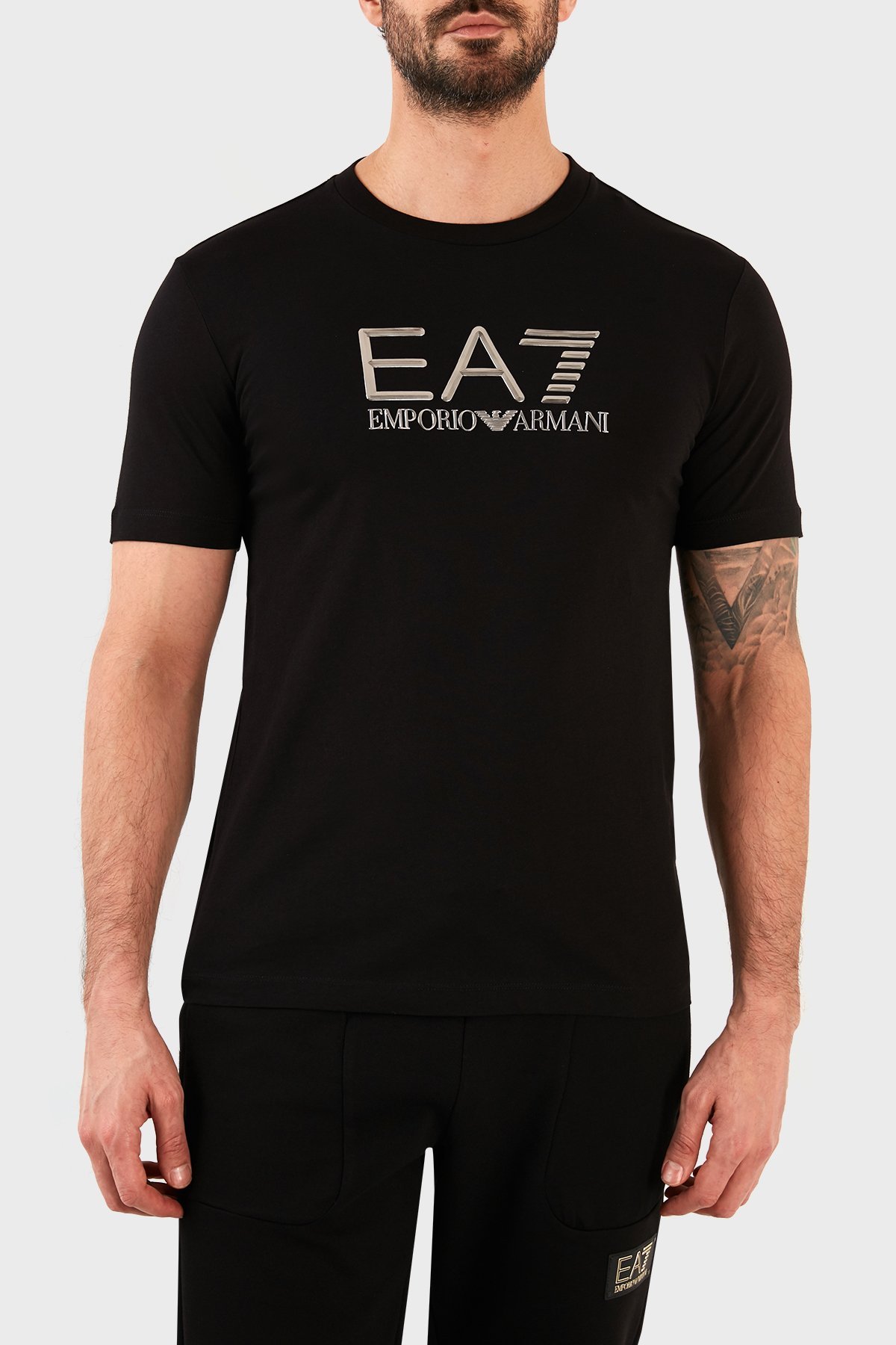 Logolu Bisiklet Yaka % 100 Pamuk Slim Fit Erkek T Shirt 3RPT71 PJM9Z 1200 SİYAH