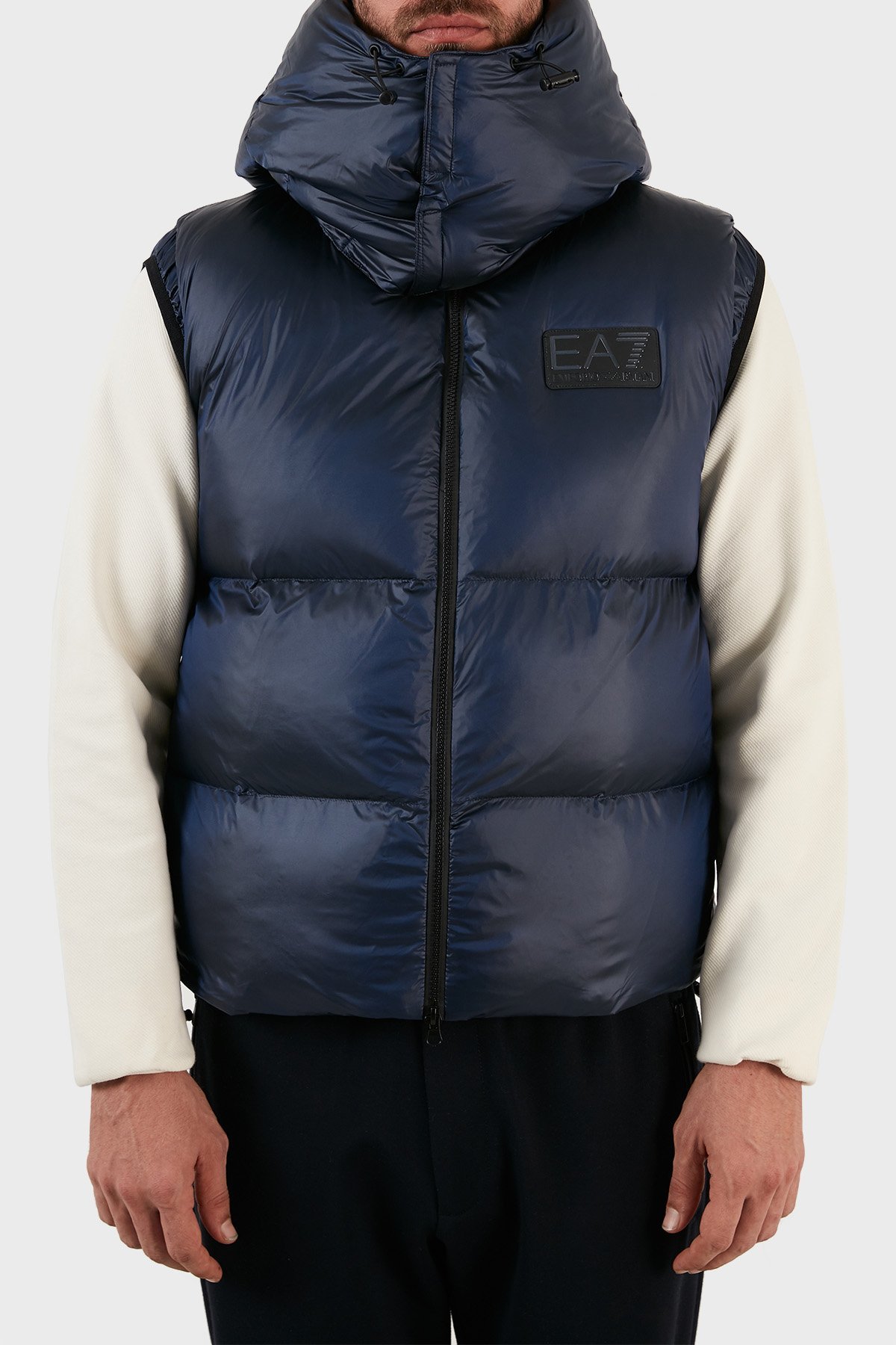 Logolu Çıkarılabilir Kapüşonlu Regular Fit Şişme Erkek Yelek 6LPQ03 PN2MZ 1554 LACİVERT