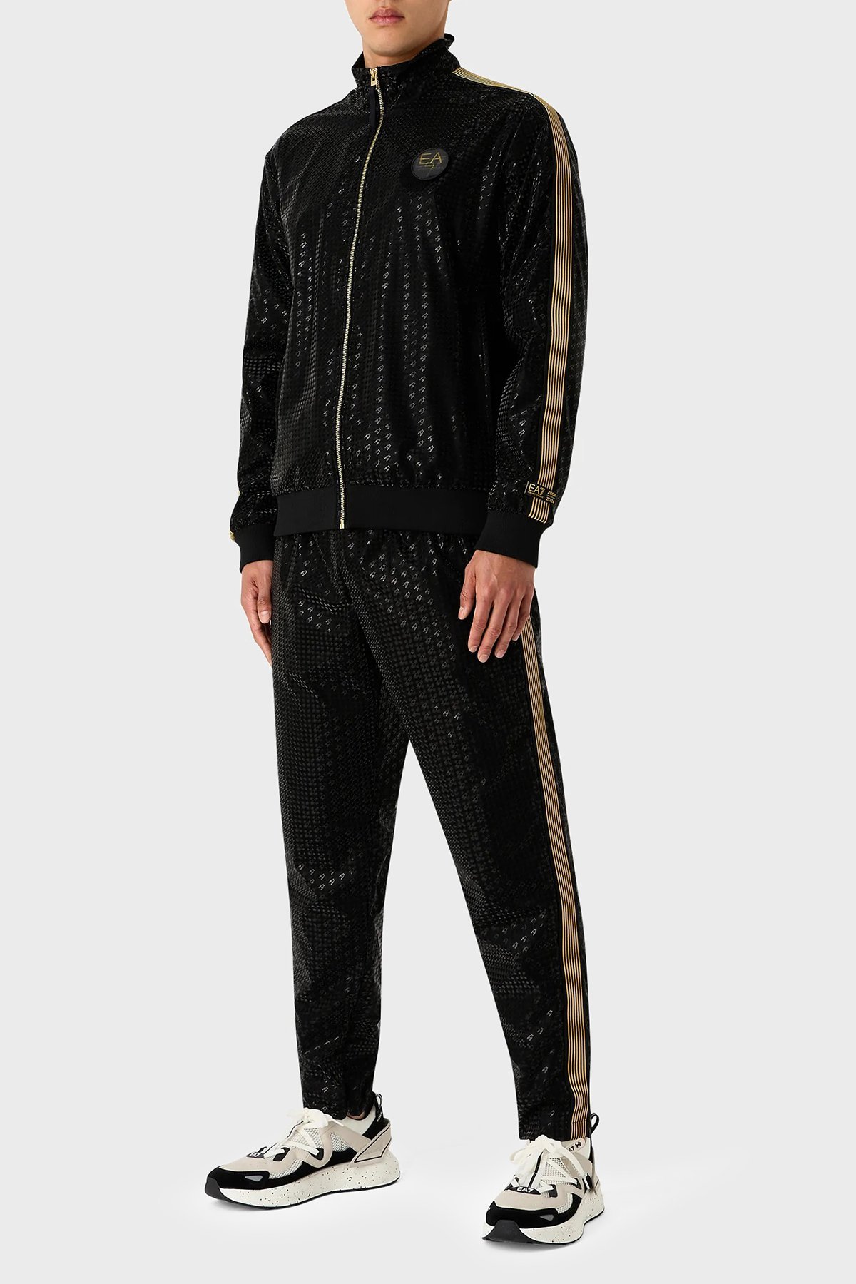 Logolu Fermuarlı Dik Yaka Erkek Eşofman Takımı 3DPV62 PNFUZ 1200 SİYAH