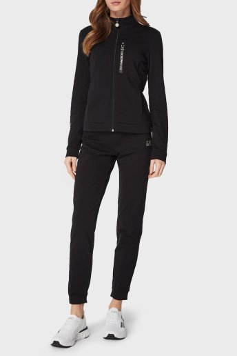 Logolu Fermuarlı Dik Yaka Pamuklu Slim Fit Bayan Eşofman Takımı 6LTV63 TJFTZ 0200 SİYAH