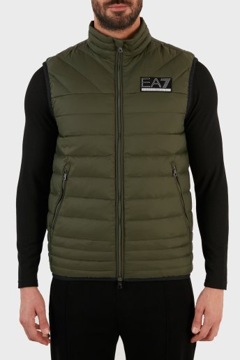 Logolu Ördek Tüyü Dolgulu Dik Yaka Regular Fit Şişme Erkek Yelek S 6KPQ02 PNR4Z 1852 HAKİ