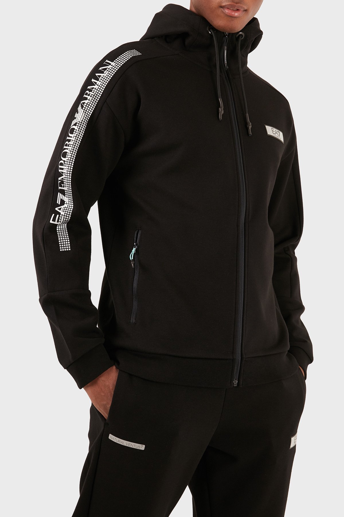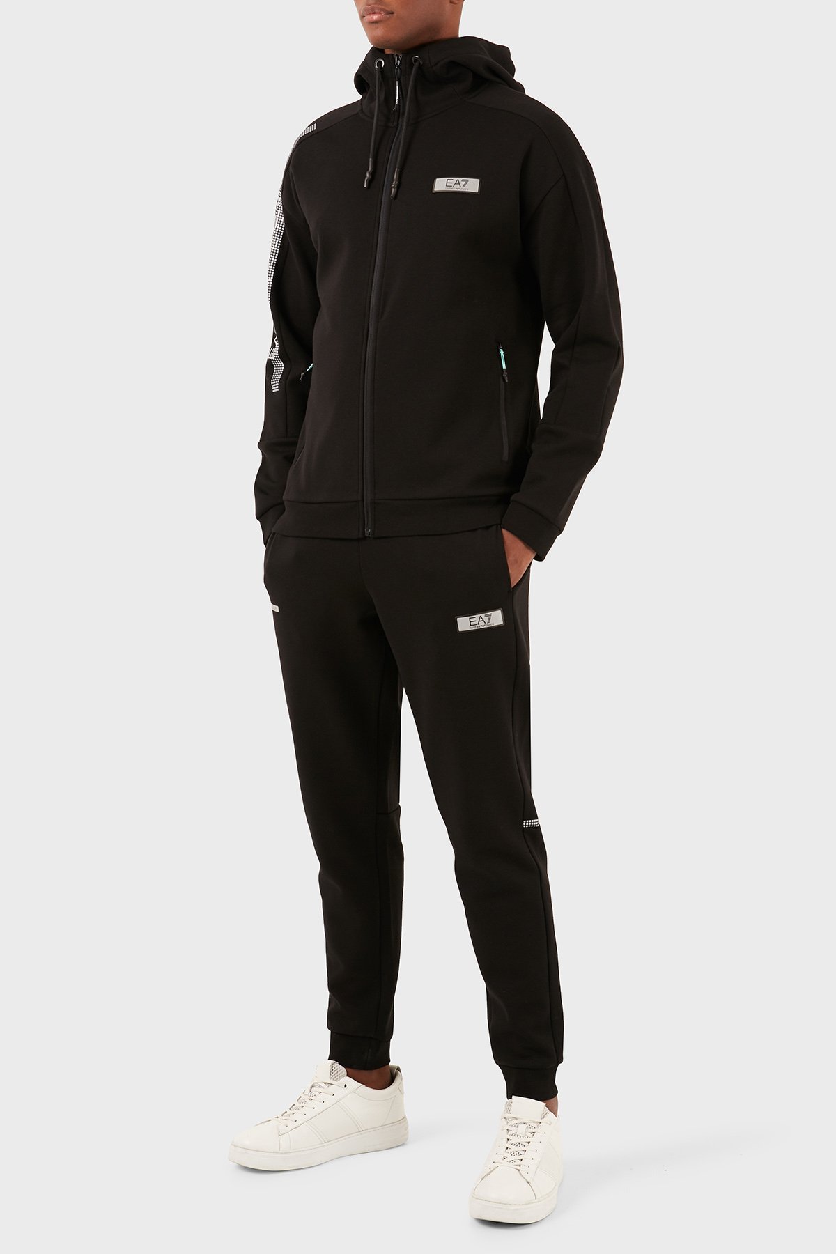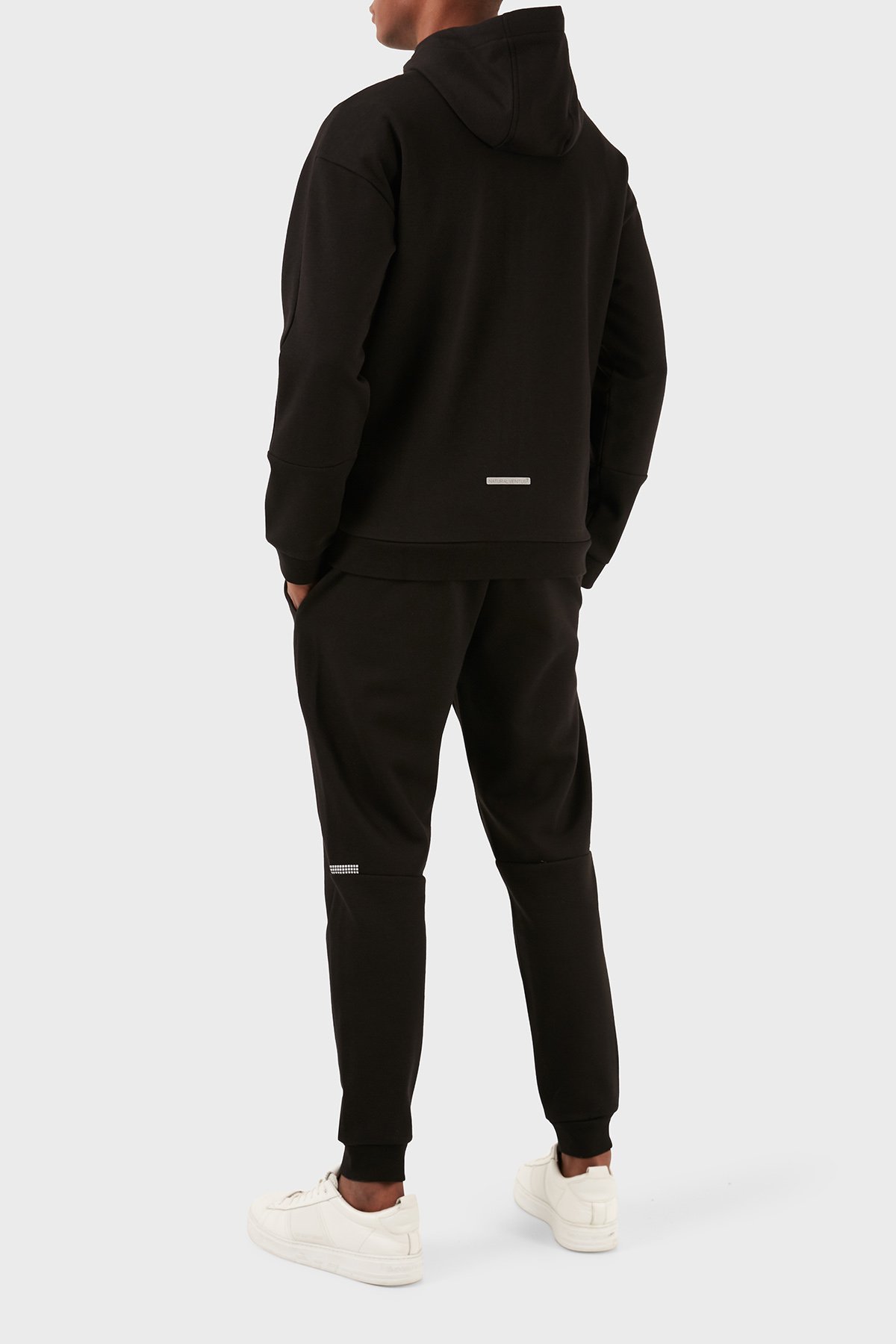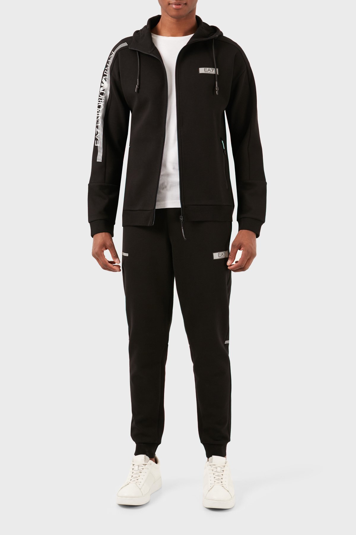 Logolu Pamuk Karışımlı Kapüşonlu Fermuarlı Cepli Erkek Eşofman Takımı 3DPV61 PJUWZ 1200 SİYAH