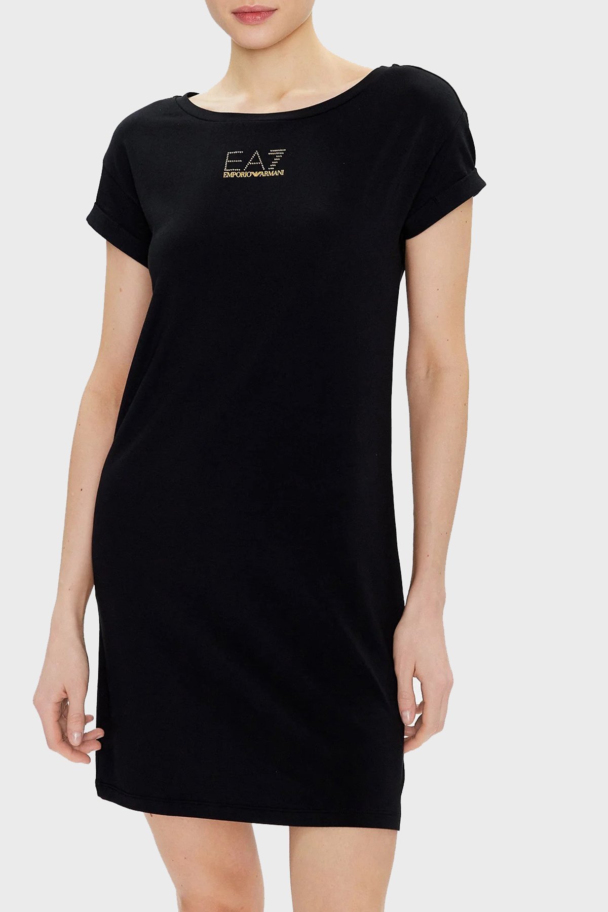 Logolu Pamuk Karışımlı Regular Fit Mini Bayan Elbise 3RTA55 TJDQZ 1200 SİYAH