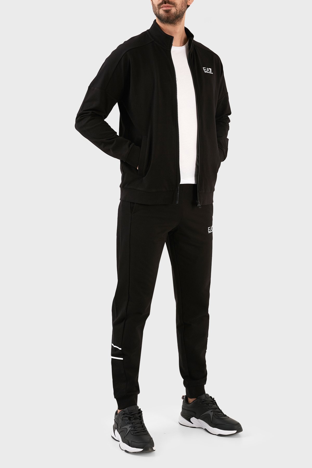 Logolu Pamuklu Fermuarlı Dik Yaka Regular Fit Erkek Eşofman Takımı 3RPV66 PJ05Z 0200 SİYAH