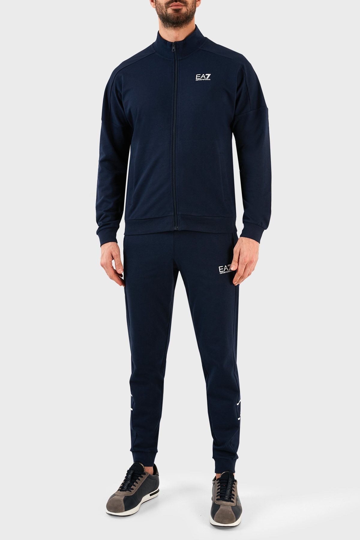 Logolu Pamuklu Fermuarlı Dik Yaka Regular Fit Erkek Eşofman Takımı 3RPV66 PJ05Z 1554 LACİVERT