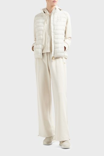 Logolu Streç Pamuklu Relaxed Fit Kapüşonlu Bayan Eşofman Takımı 7W000086 AF13135 U1112 KREM