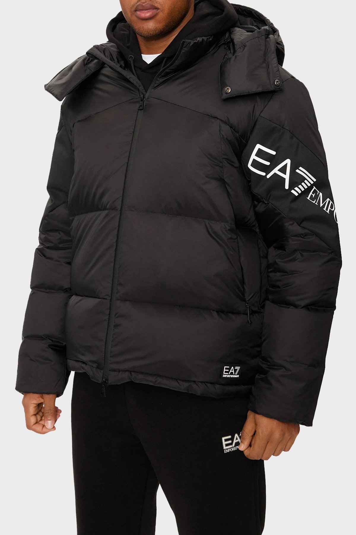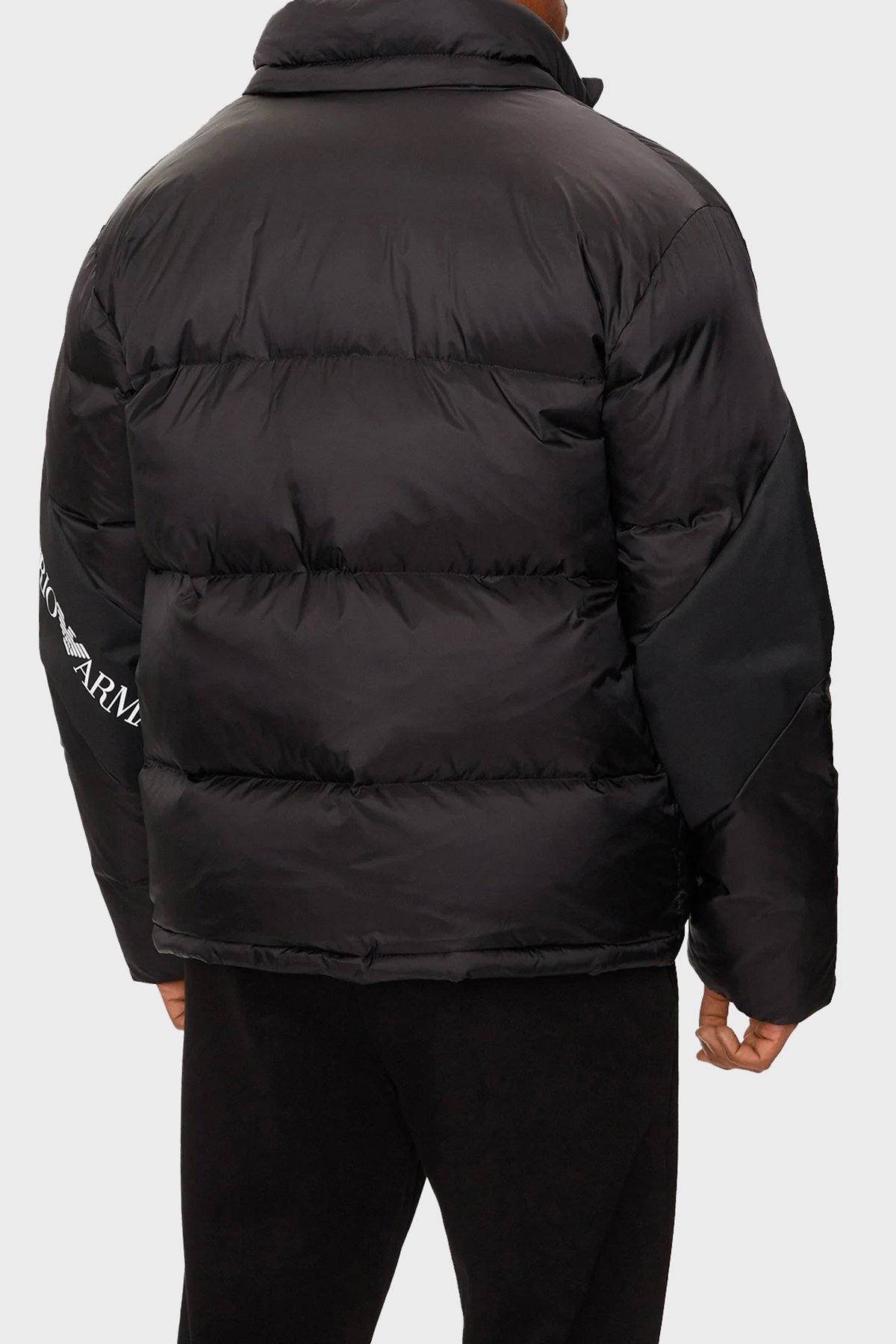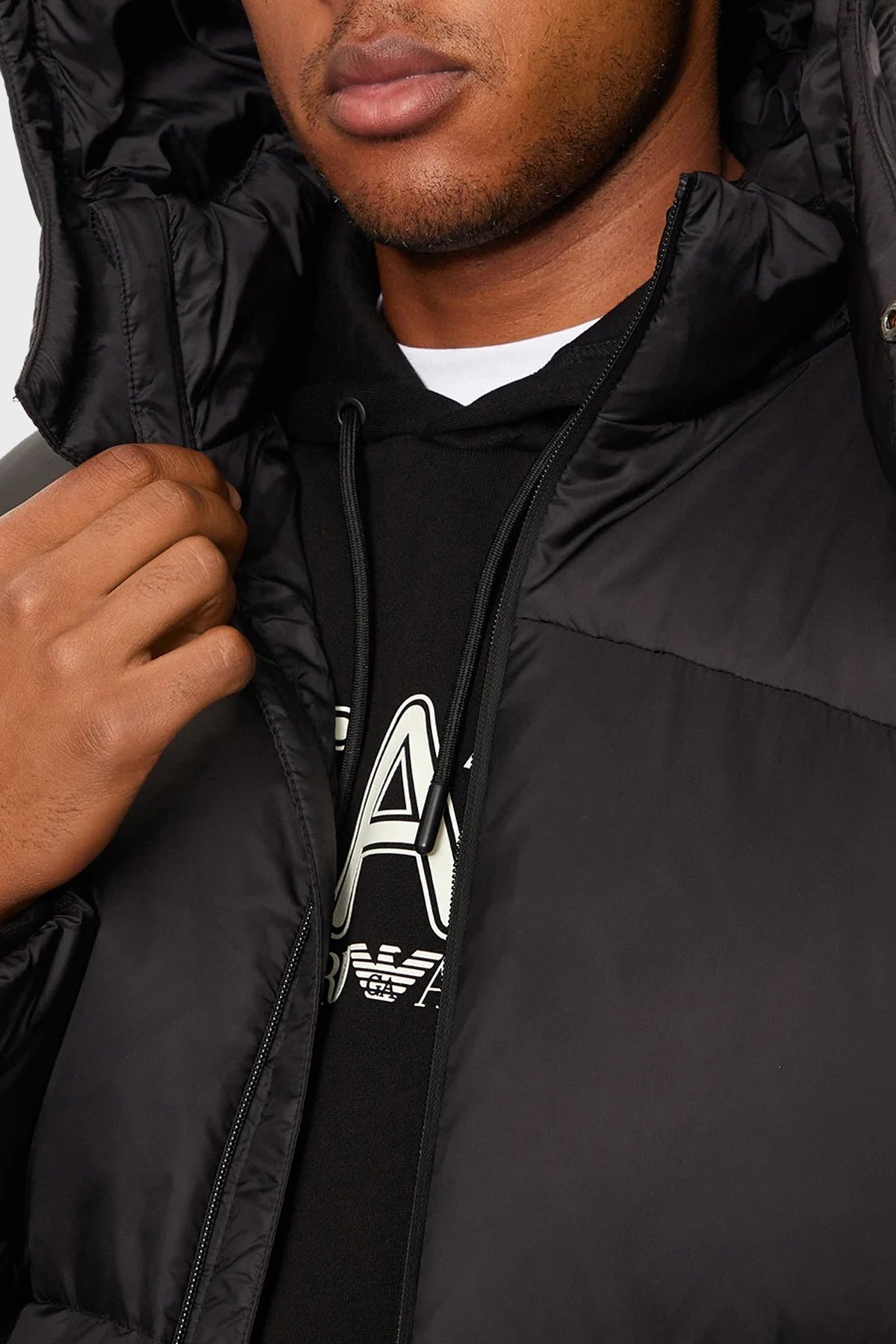 Logolu Su İtici Rüzgar Geçirmez Oversize Fit Çıkarılabilir Kapüşonlu Şişme Erkek Mont 6DPB33 PNEOZ 1200 SİYAH