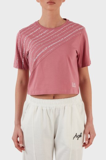 Pamuklu Baskılı Bisiklet Yaka Crop Bayan T Shirt 3LTT11 TJAQZ 1413 PEMBE