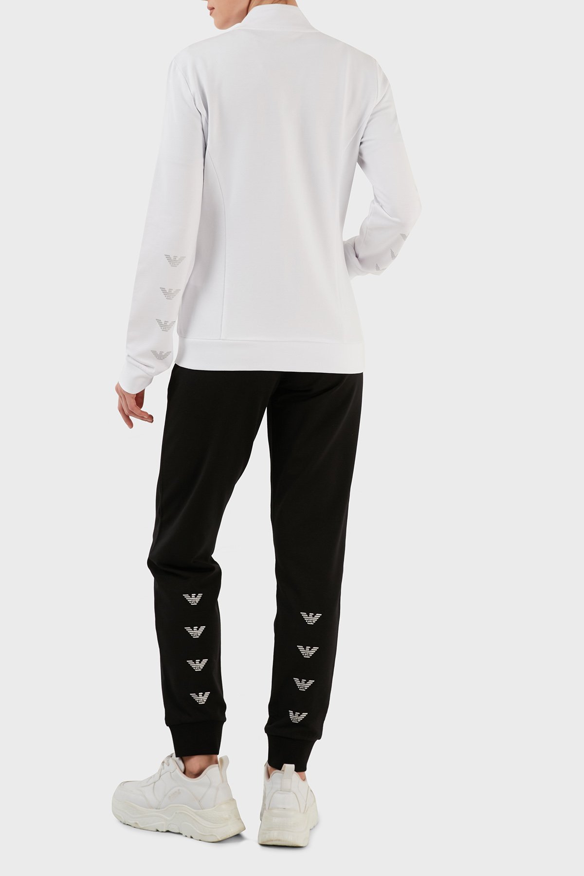 Pamuklu Regular Fit Fermuarlı Dik Yaka Bayan Eşofman Takımı 3RTV56 TJEAZ 22BA SİYAH-BEYAZ