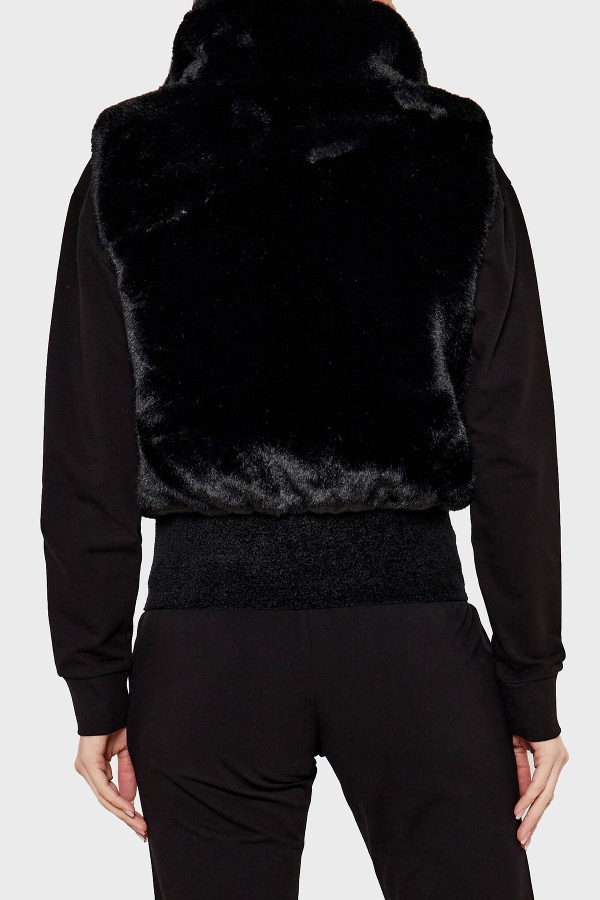 Regular Fit Dik Yaka Yumuşak Tüylü Bayan Yelek 6DTQ03 TN2ZZ 1200 SİYAH