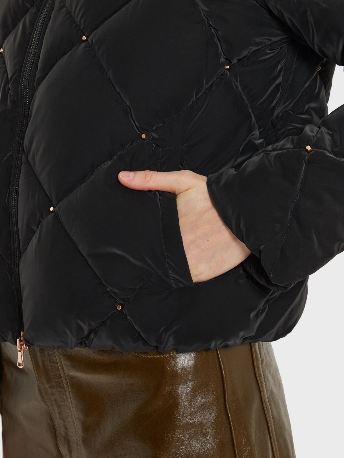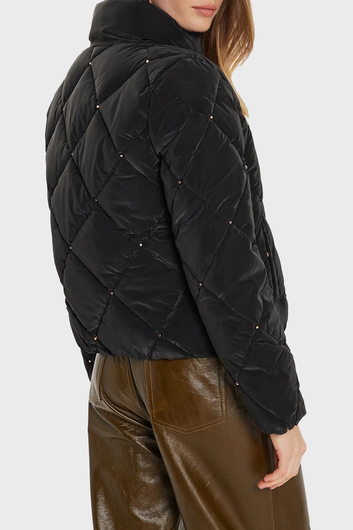 Regular Fit Gizli Kapüşonlu Dik Yaka Crop Şişme Bayan Mont 6DTB14 TNDMZ 1200 SİYAH