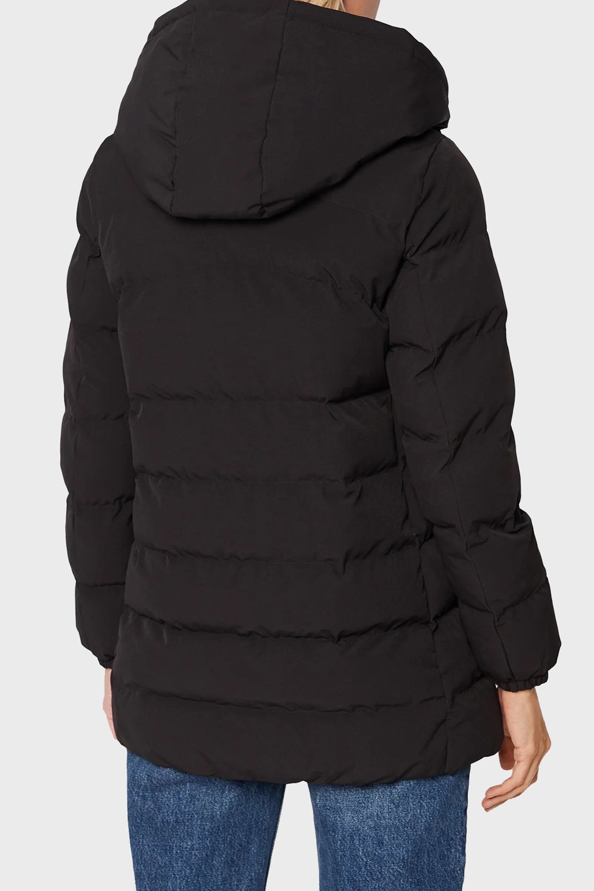Regular Fit Rüzgar ve Isı Kaybı Korumalı Çıkarılabilir Kapüşonlu Uzun Bayan Mont 6LTK09 TN5VZ 0200 SİYAH