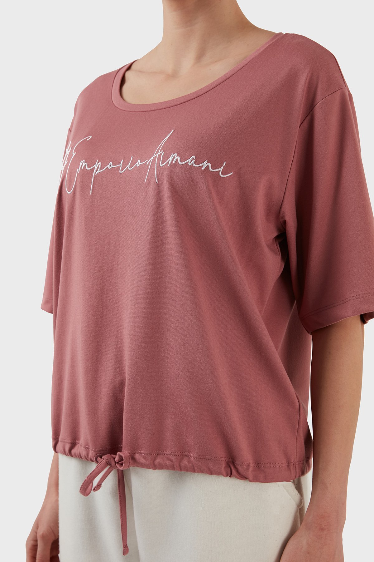 Relaxed Fit Bağlama Detaylı Bisiklet Yaka Bayan T Shirt 6LTT29 TJDFZ 1438 GÜL KURUSU