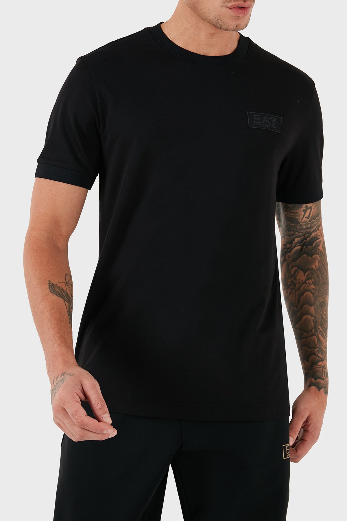 Slim Fit Bisiklet Yaka Logolu Erkek T Shirt 6DPT18 PJRGZ 1200 SİYAH