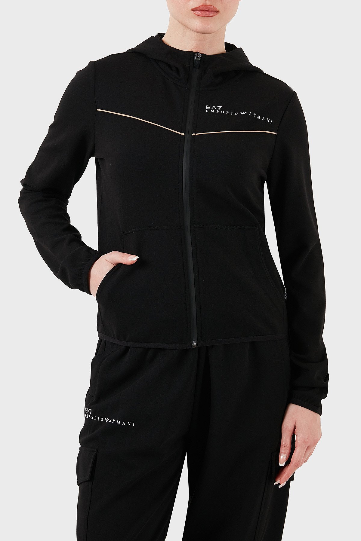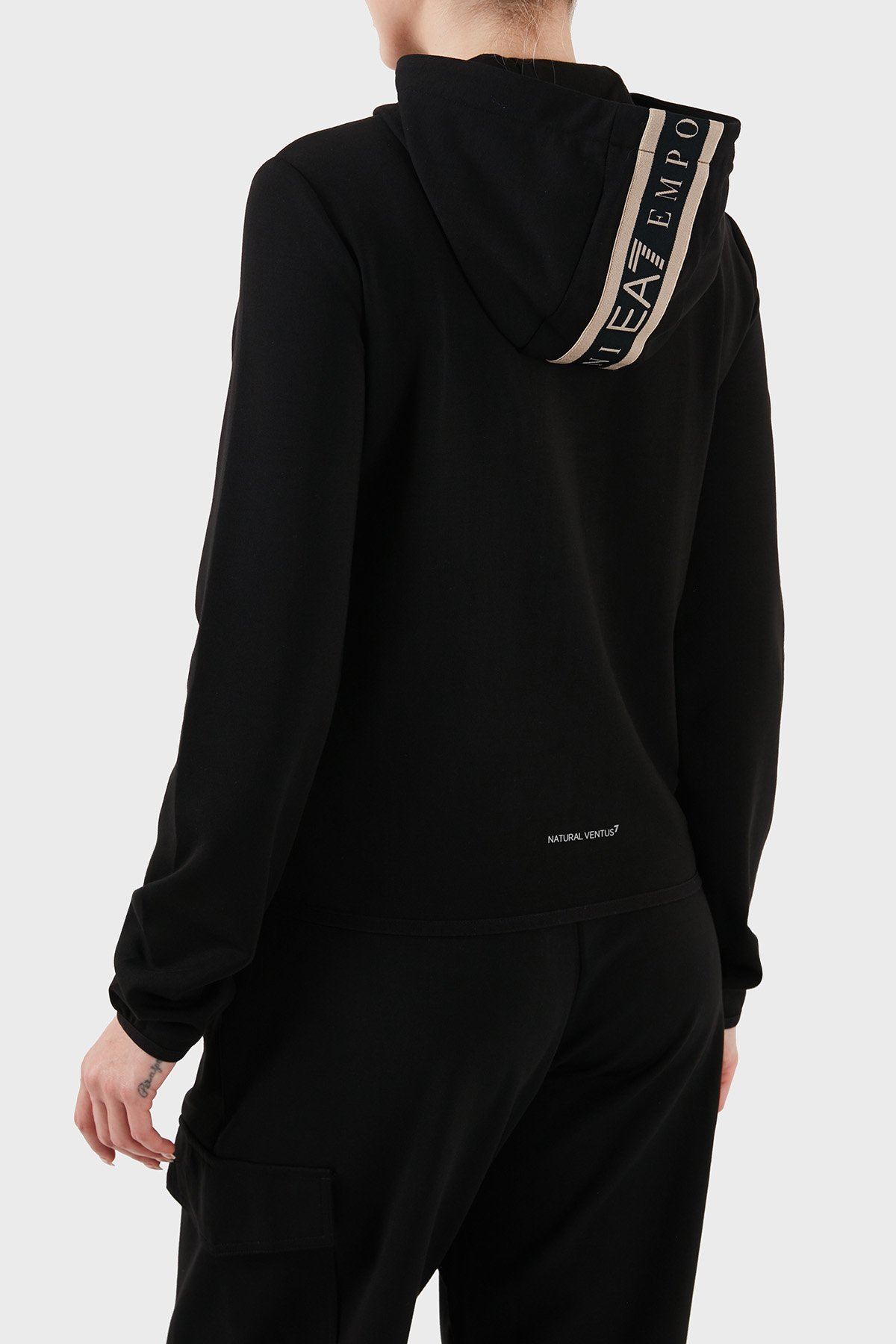 -Logo baskılı şerit detaylı ayarlanabilir ipli kapüşonlu