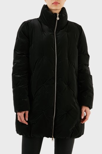 Taş Detaylı Fermuarlı Dik Yaka Regular Fit Uzun Bayan Mont 6RTK34 TNDMZ 1200 SİYAH