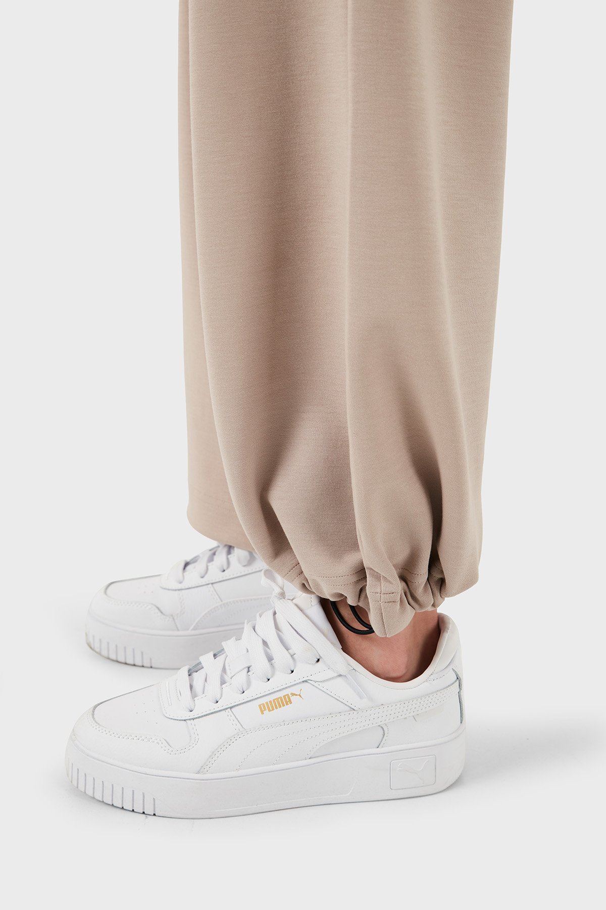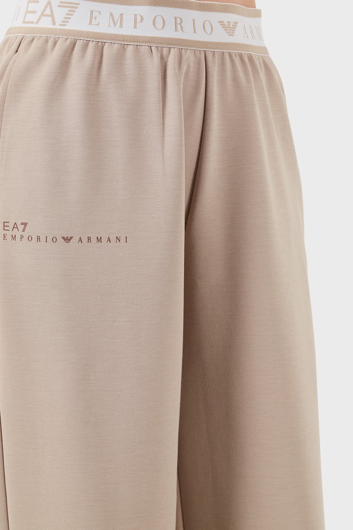 Wide Leg Yüksek Bel Bol Paça Logolu Bayan Pantolon 7W000281 AF12501 U6155 BEJ