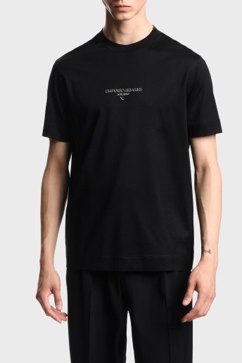 Emporio Arman Logo Baskılı Pamuklu Regular Fit Bisiklet Yaka Erkek T Shirt EM002838 AF10761 UC001 SİYAH