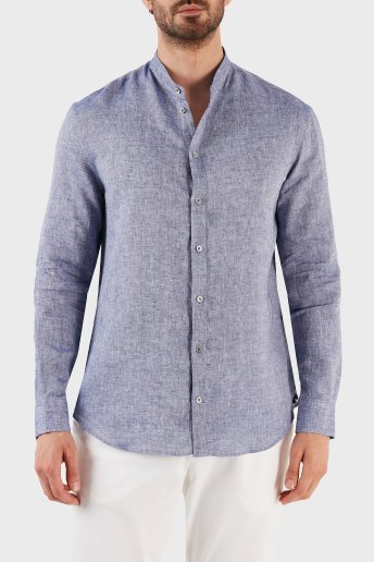 % 100 Keten Regular Fit Bant Yaka Uzun Kollu Erkek Gömlek D41SMG D10F9 919 LACİVERT