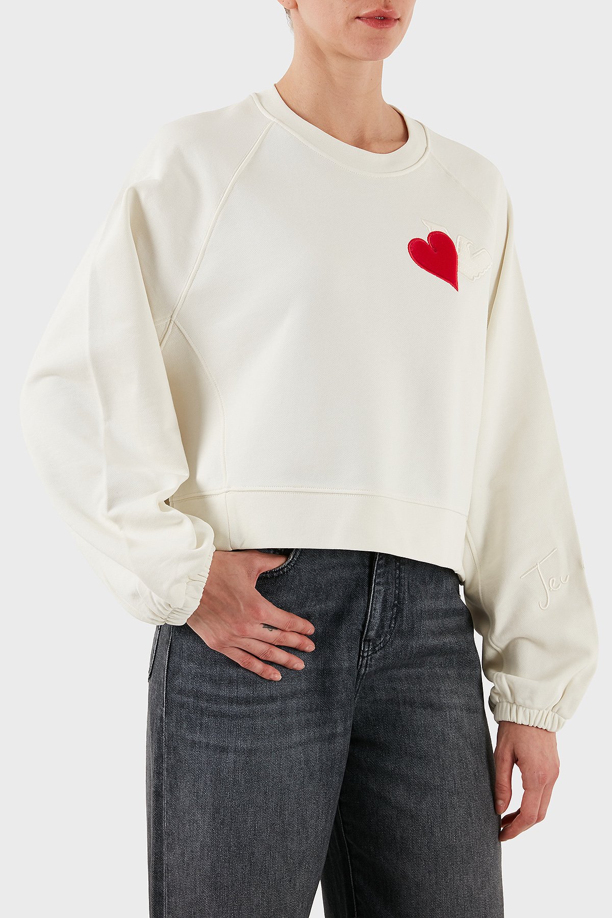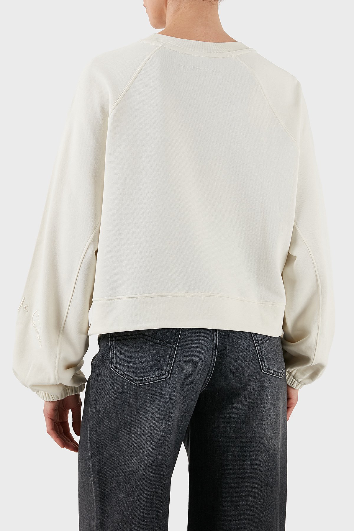 % 100 Pamuk Comfort Fit Minimal Desenli Bayan Sweat EW002122 AF12538 U1144 EKRU
