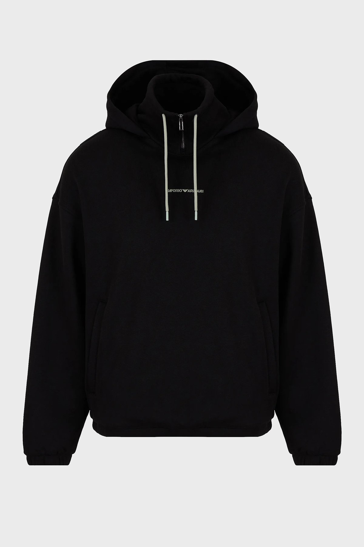 % 100 Pamuk Kapüşonlu Yarım Fermuarlı Oversize Fit Erkek Sweat 6R1ME6 1JWPZ 0999 SİYAH
