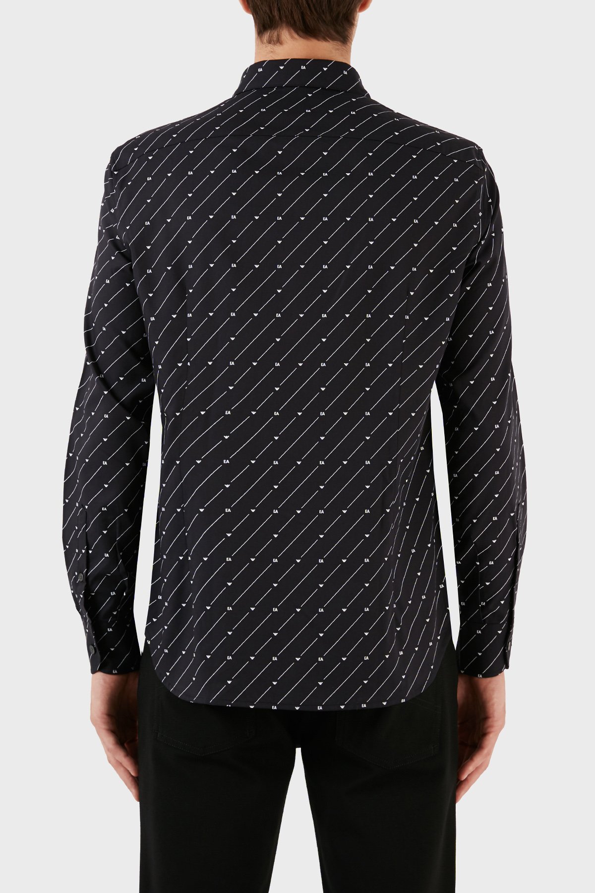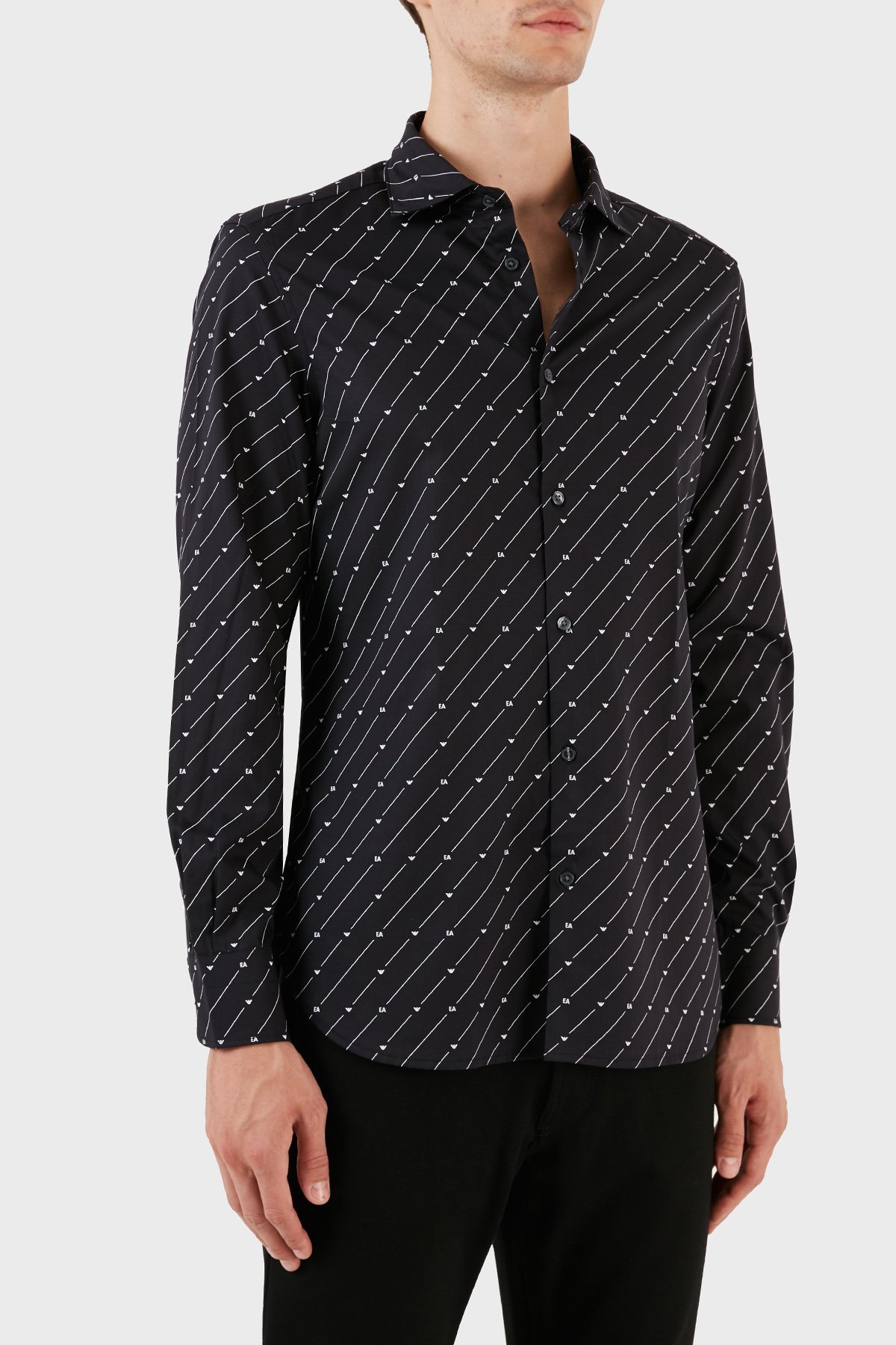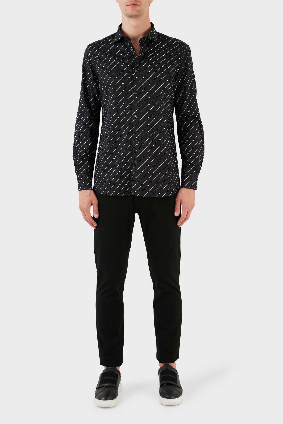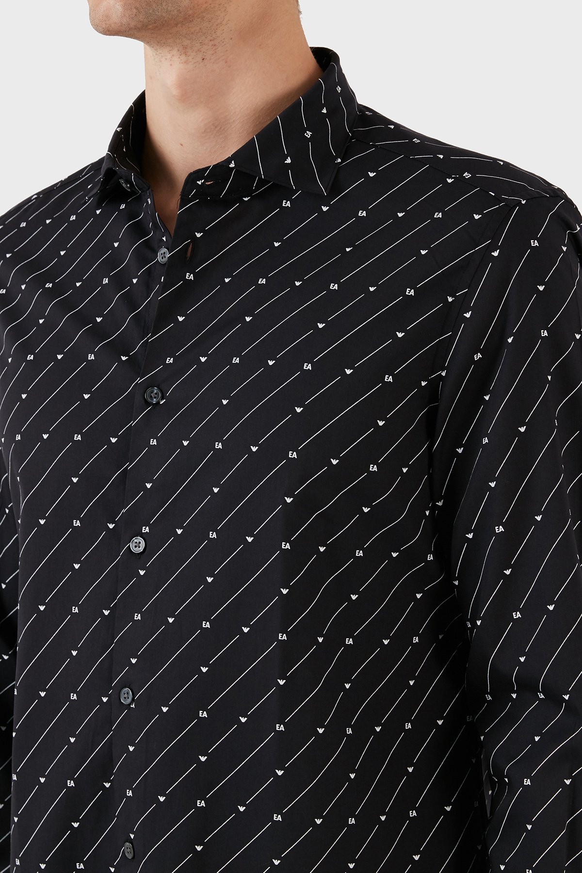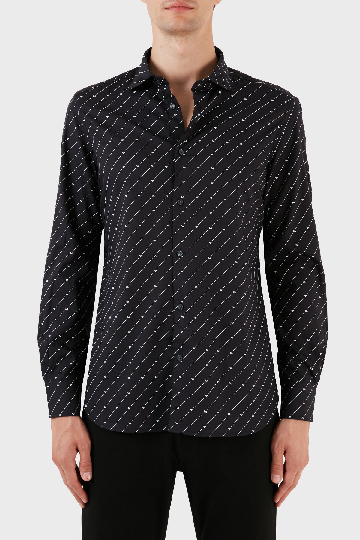 Pamuklu Logo Desen Baskılı Regular Fit Erkek Gömlek 6R1C86 1NMVZ F086 SİYAH