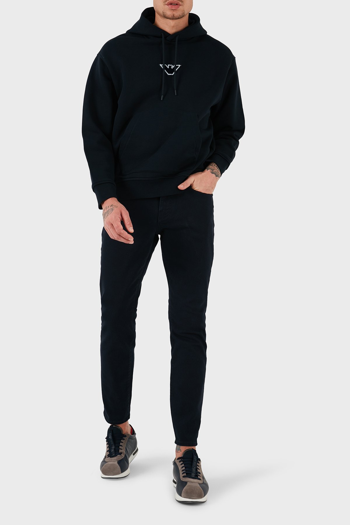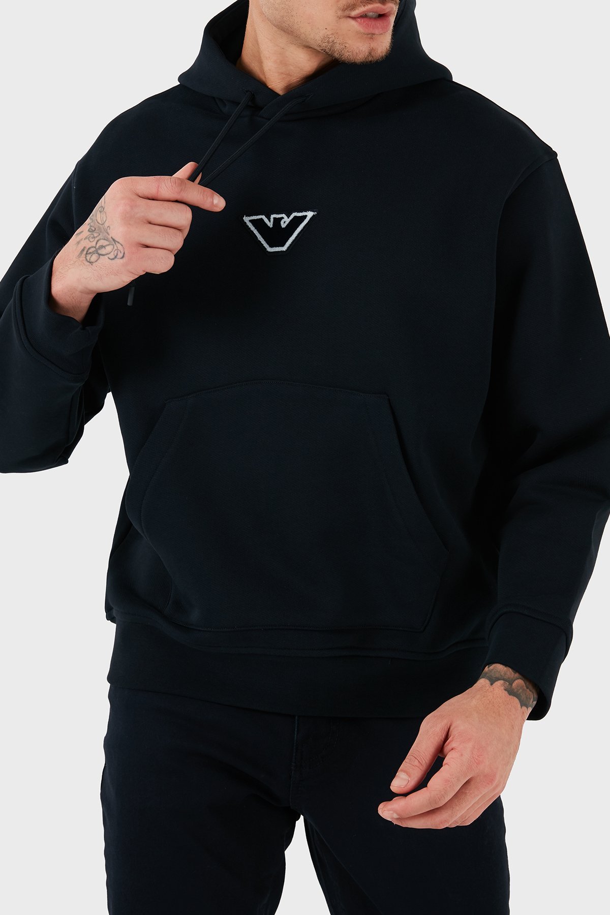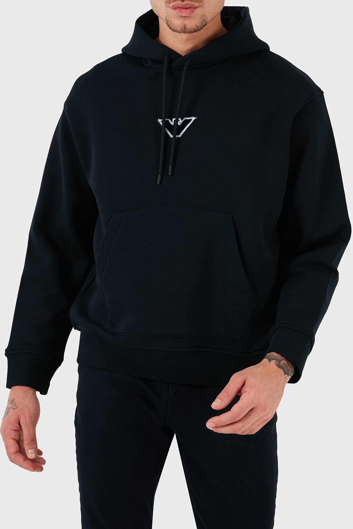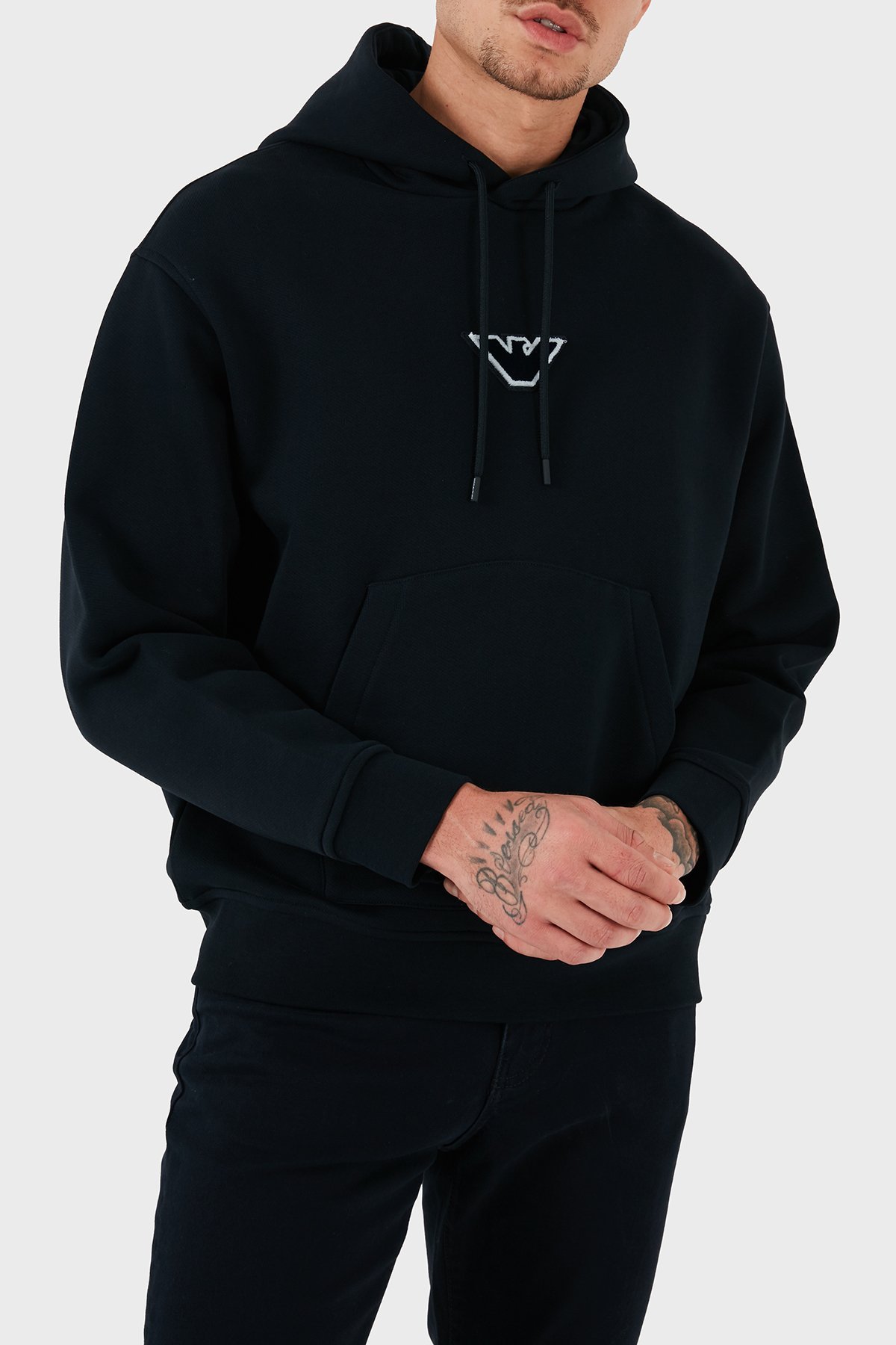 % 100 Pamuk Logolu Regular Fit Kapüşonlu Erkek Sweat 6D1M93 1JTAZ 0985 LACİVERT