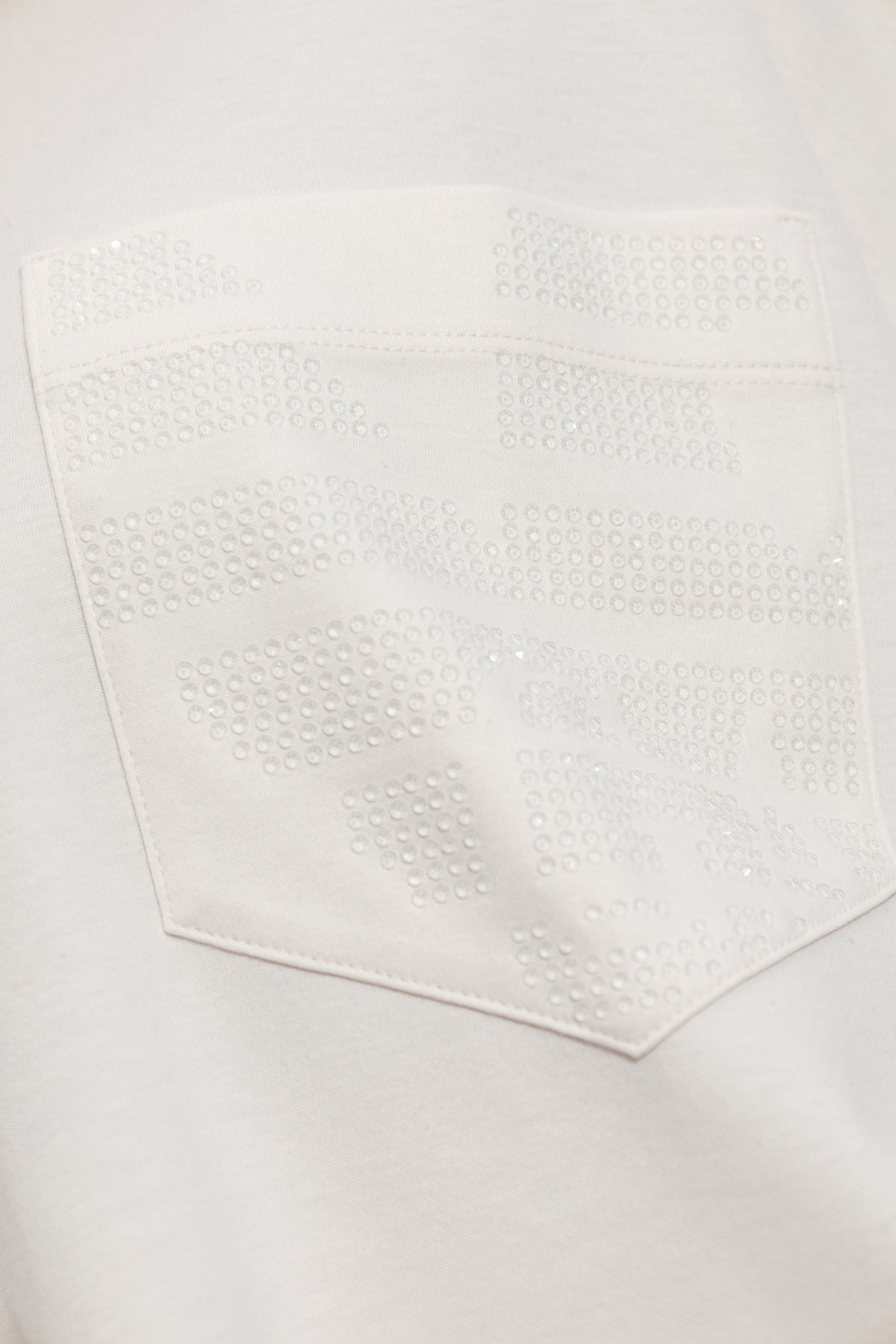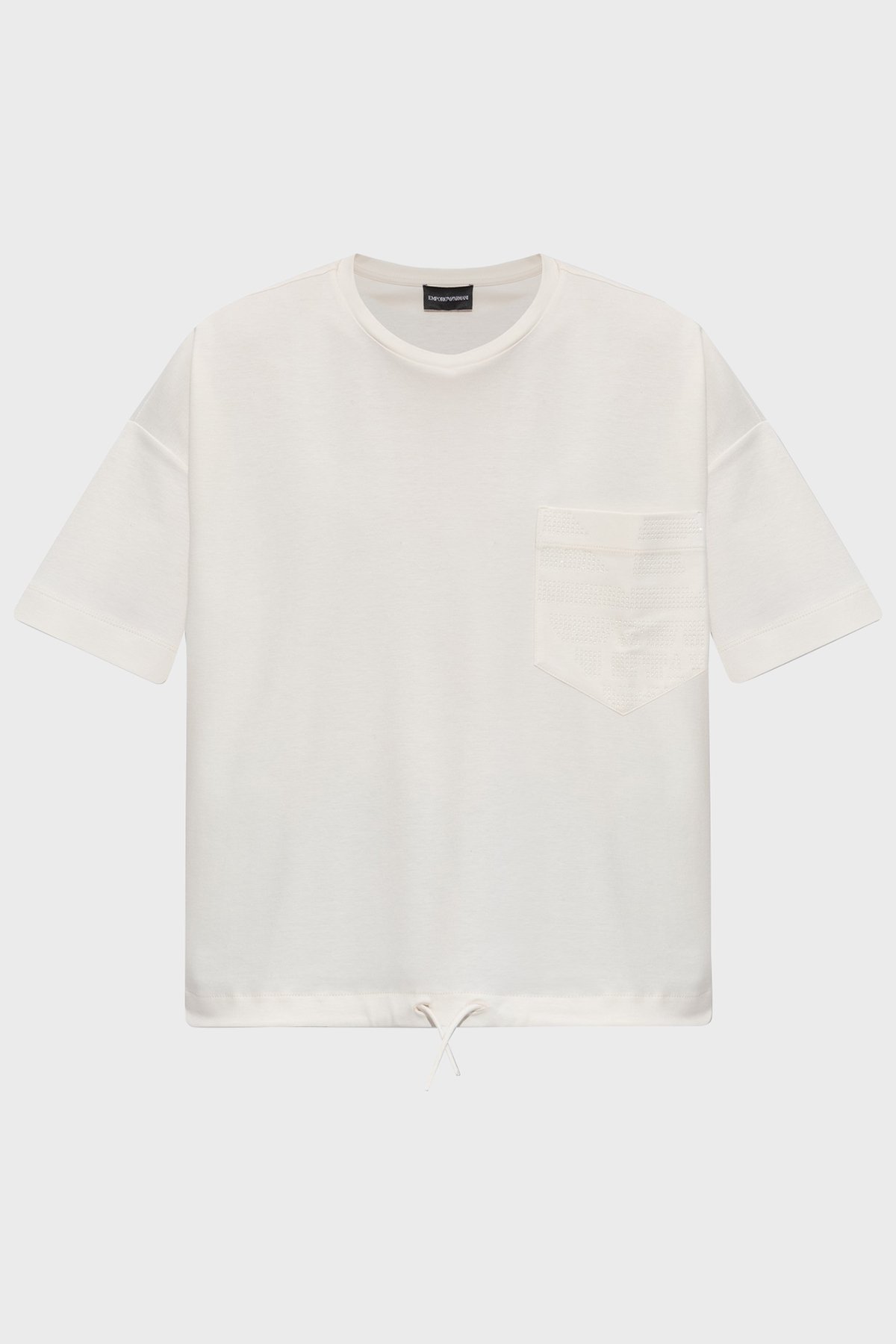 % 100 Pamuk Oversize Fit Bisiklet Yaka Tek Cepli Bayan T Shirt EW000891 AF12545 U0006 BEYAZ