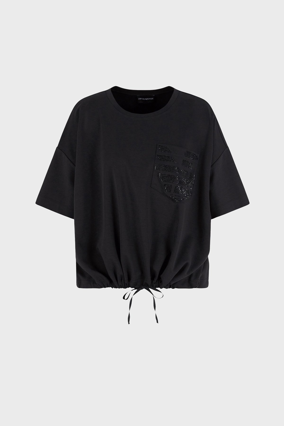 % 100 Pamuk Oversize Fit Bisiklet Yaka Tek Cepli Bayan T Shirt EW000891 AF12545 UC001 SİYAH