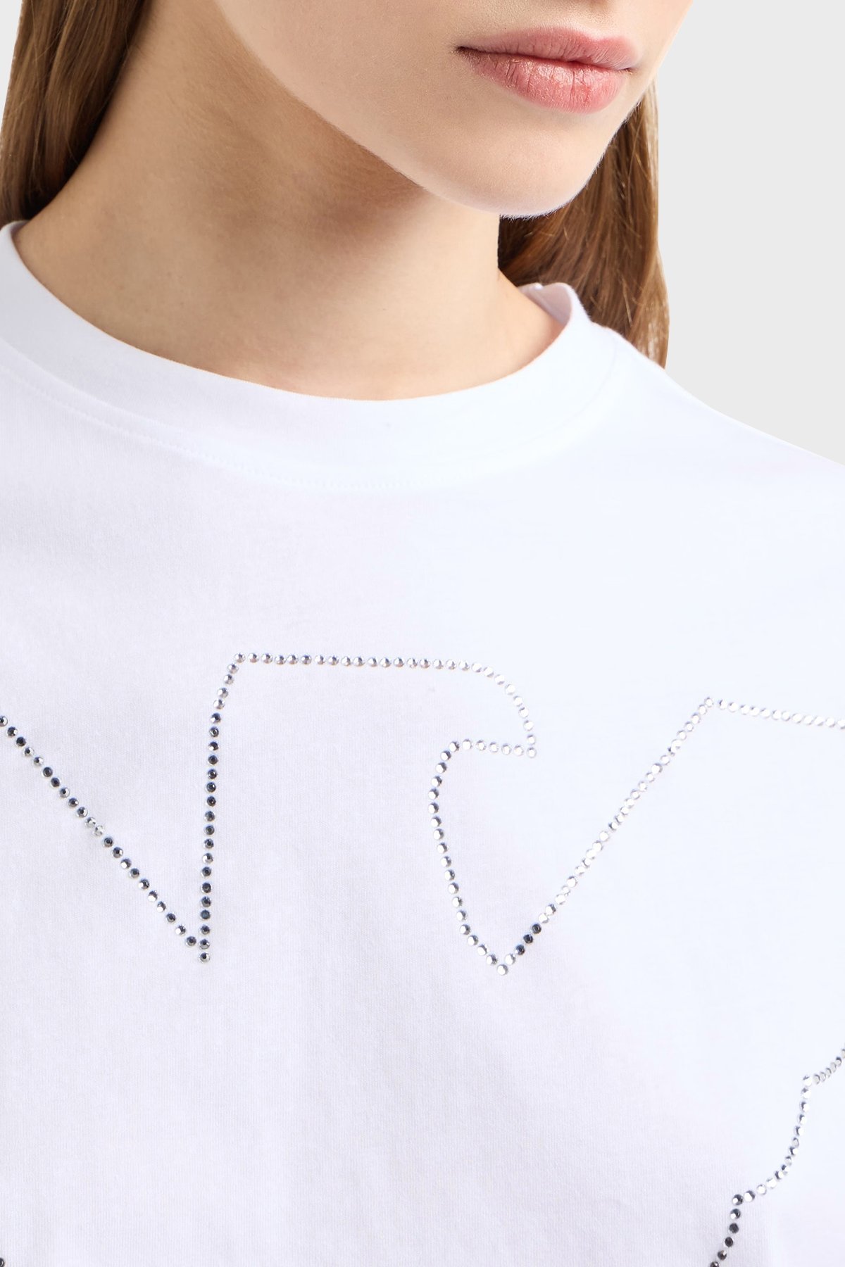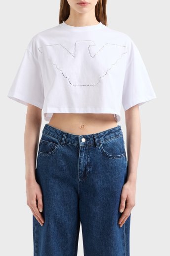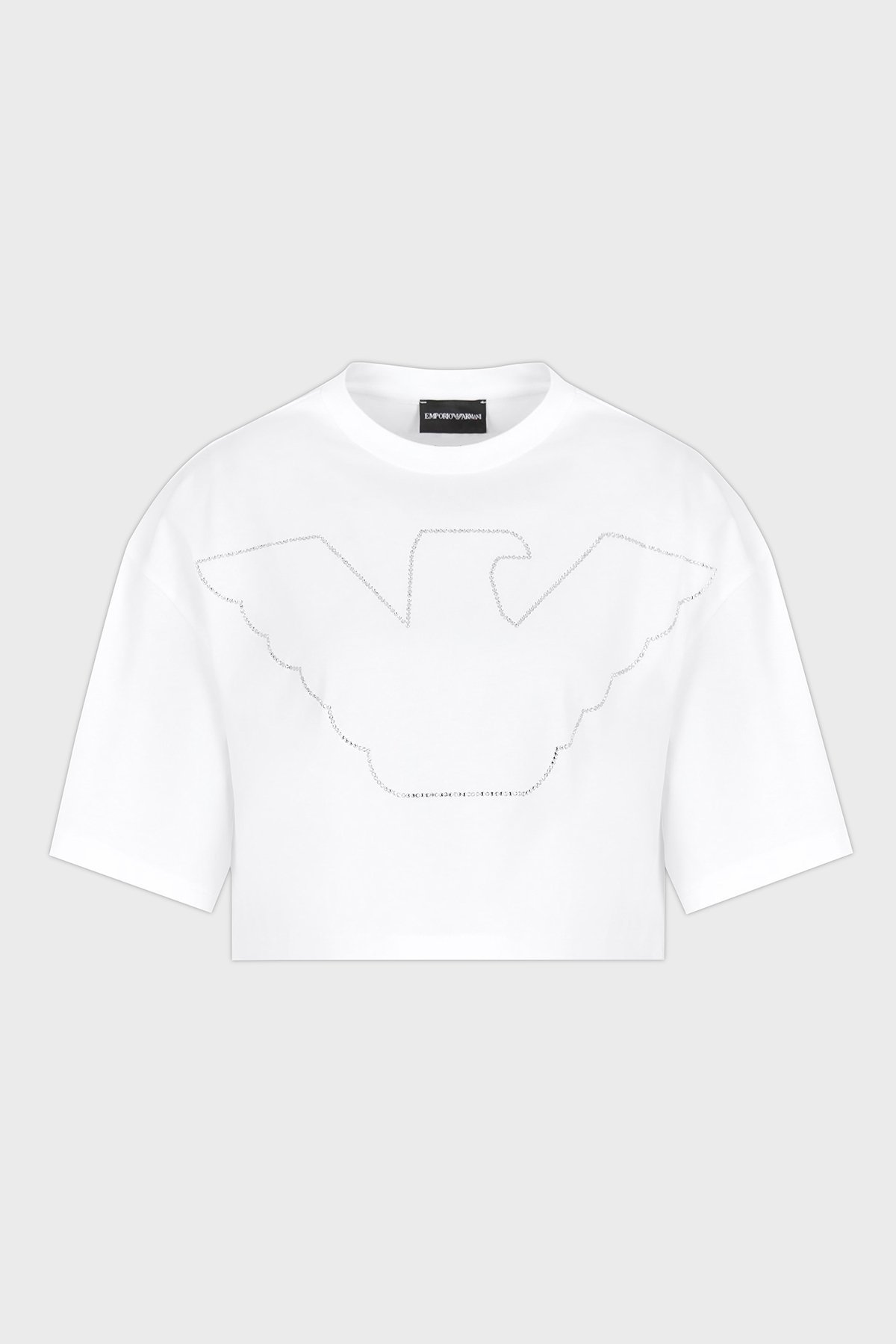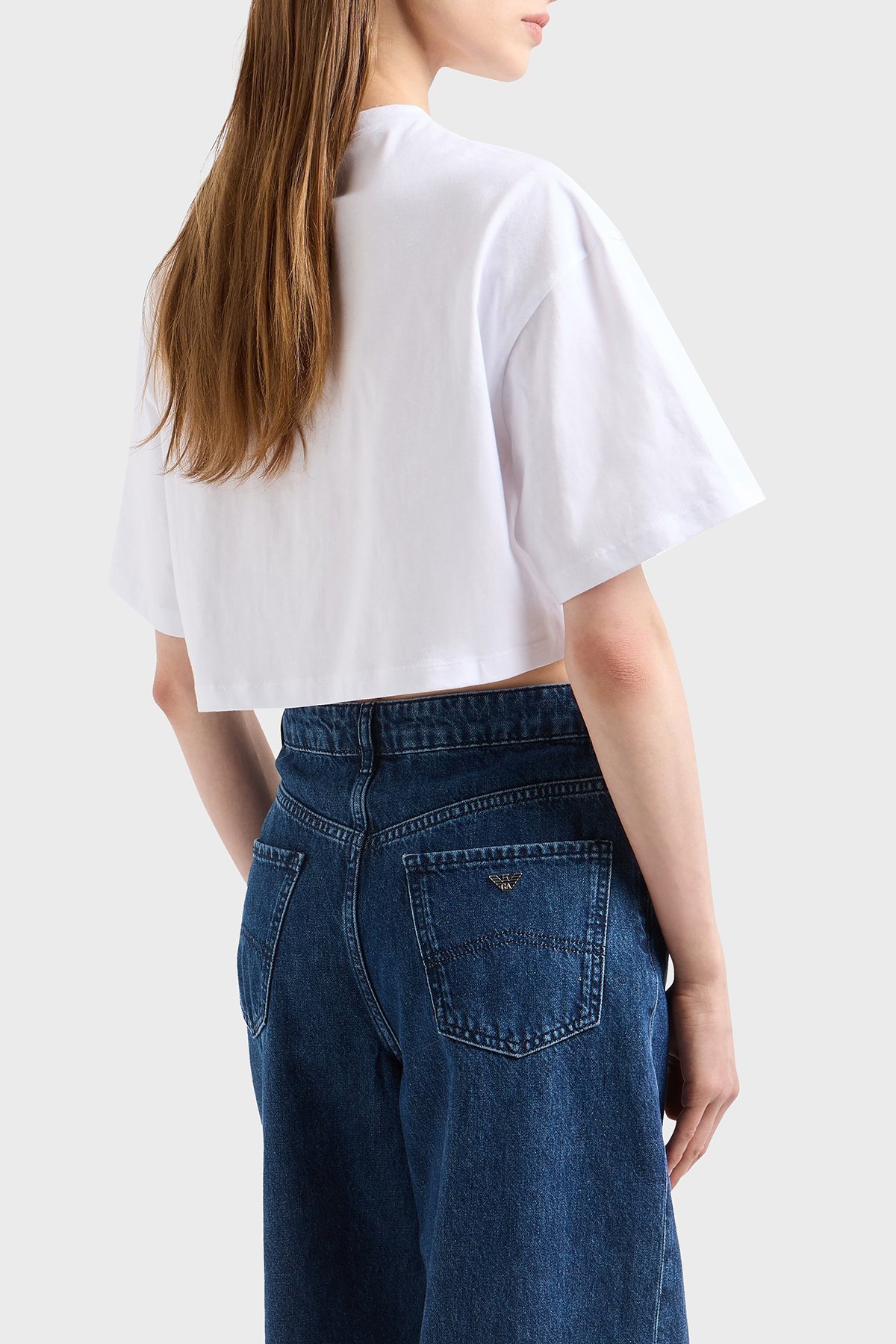 % 100 Pamuk Regular Fit Bisiklet Yaka Crop Bayan T Shirt EW000897 AF12573 U0002 BEYAZ