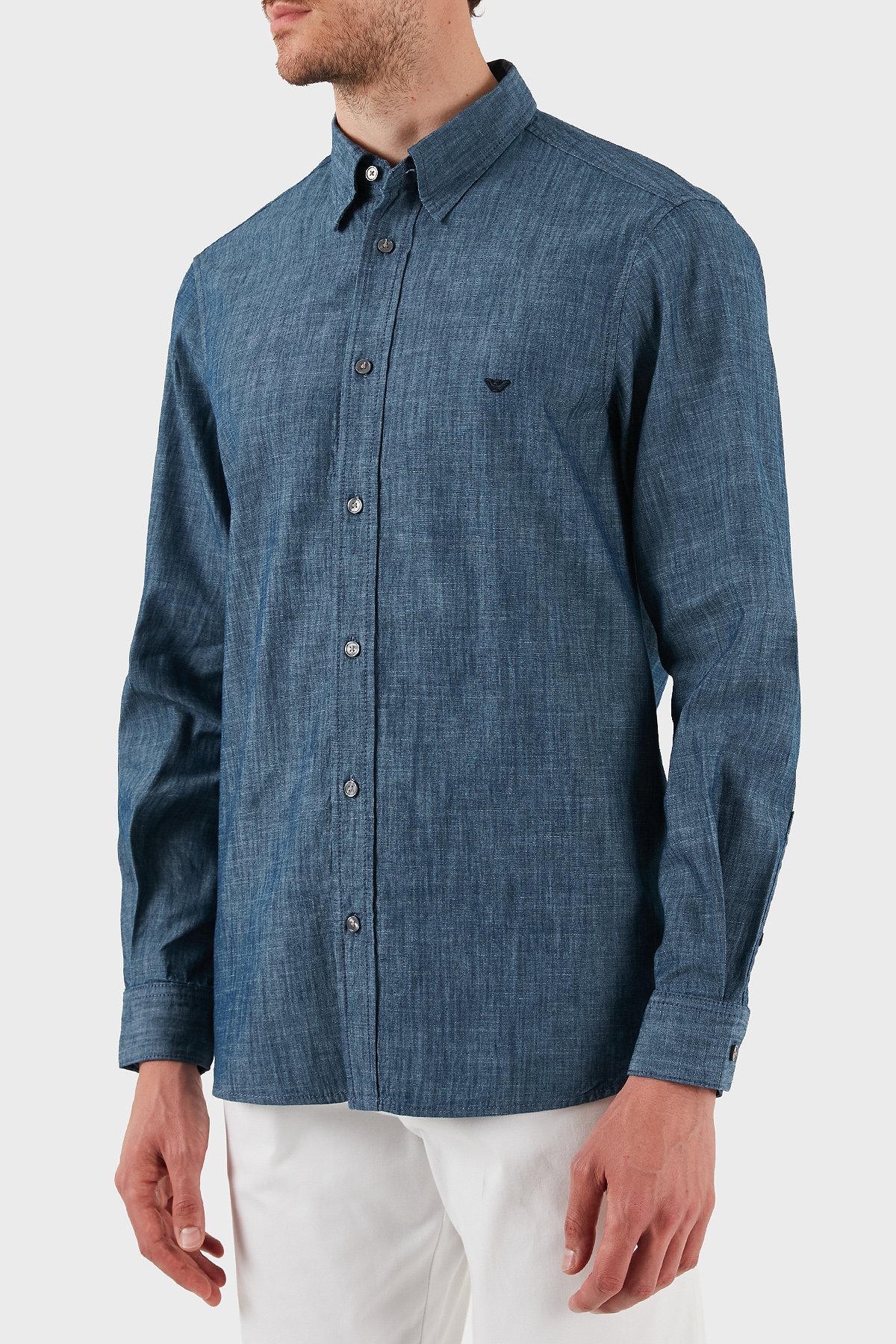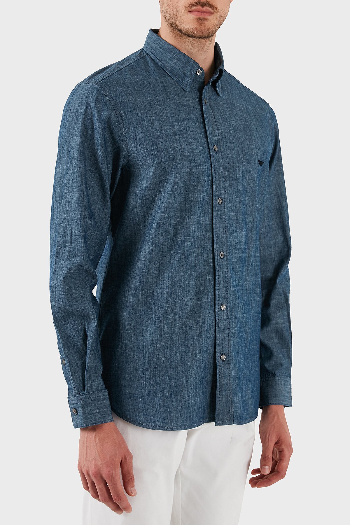 % 100 Pamuk Regular Fit Uzun Kollu Logolu Erkek Gömlek EM001527 AF15346 U9378 MAVİ
