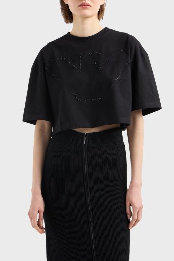 % 100 Pamuk Taşlı Regular Fit Bisiklet Yaka Crop Bayan T Shirt EW000897 AF12573 UC001 SİYAH