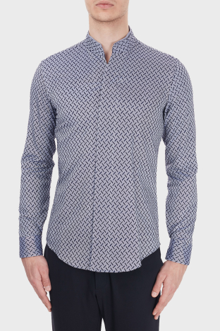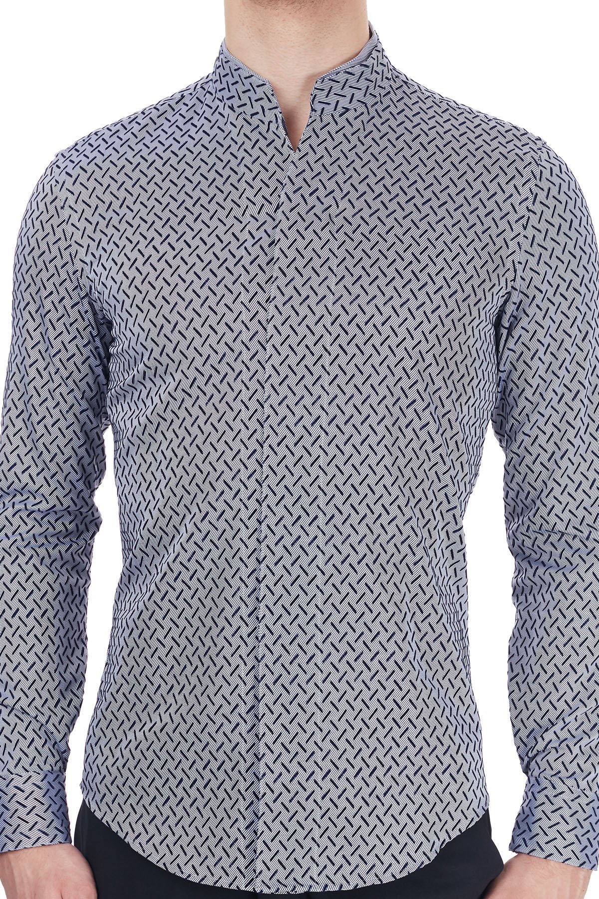 % 100 Pamuklu Dik Yaka Uzun Kollu Erkek Gömlek 91SS1T 910F7 039 LACİVERT