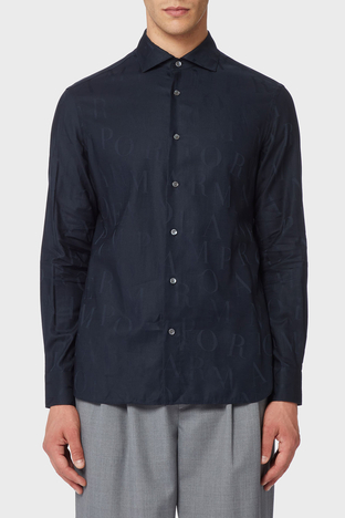 % 100 Pamuklu Logo Desenli Regular Fit Erkek Gömlek 6R1C86 1K0TZ F907 LACİVERT