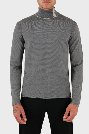 % 100 Yün Regular Fit Balıkçı Yaka Çizgili Erkek Kazak EM002025 AF14195 FB067 LACİVERT-BEYAZ