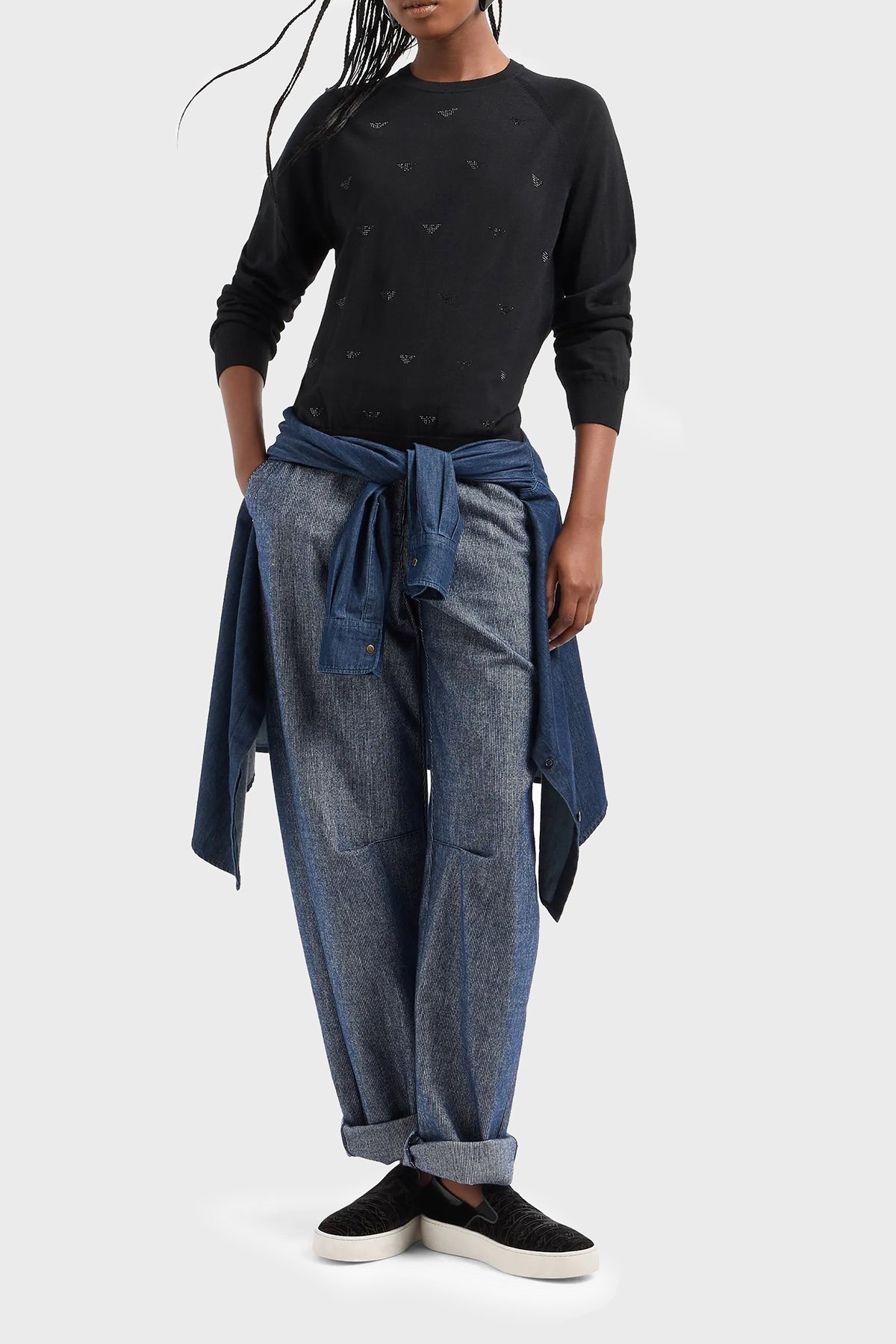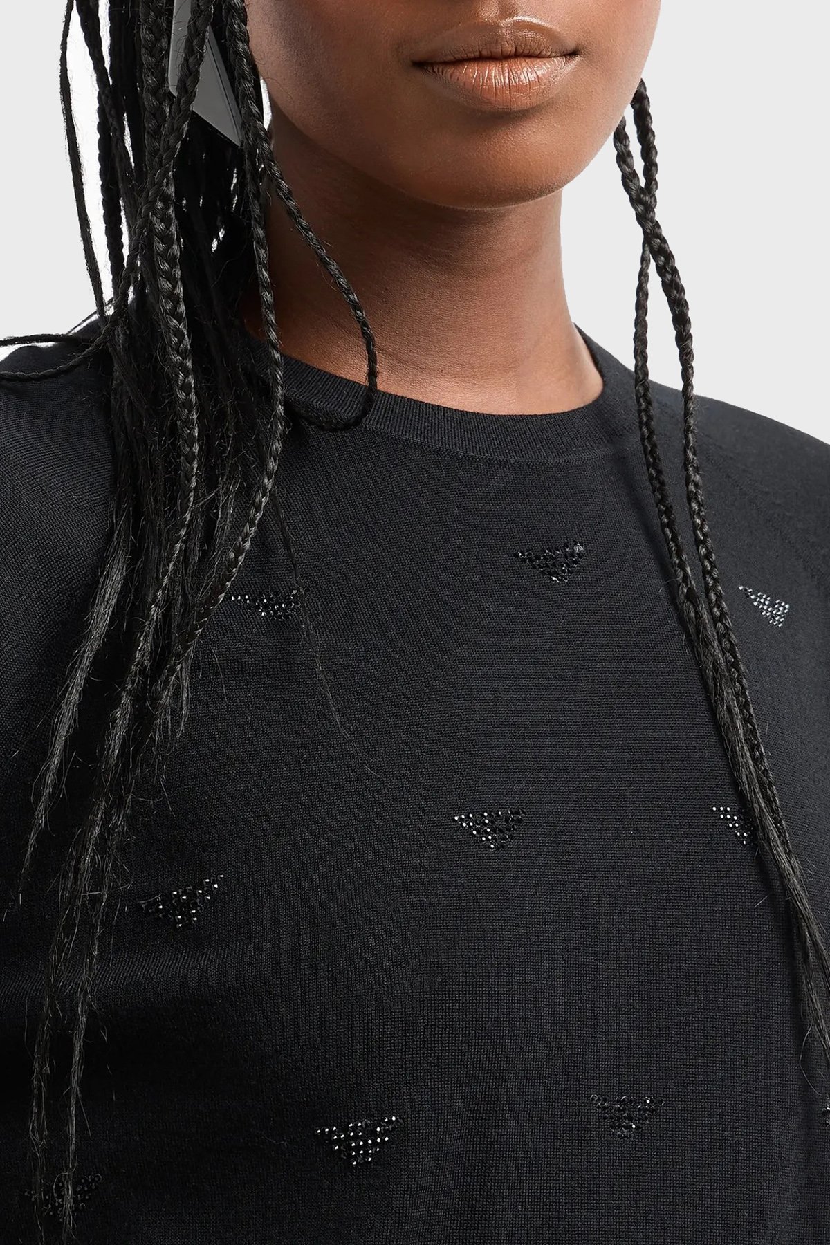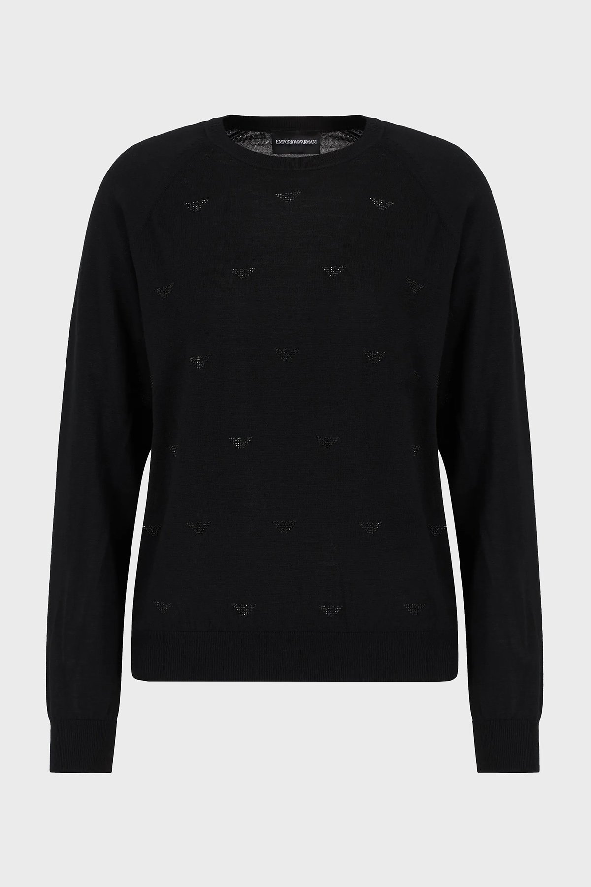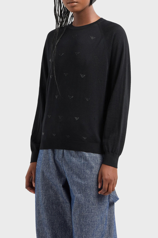 Emporio Armani Taşlı Logolu Yünlü Regular Fit Bisiklet Yaka Bayan Kazak EW001263 AF19176 FC012 SİYAH - Emporio Armani Emporio Armani Taşlı Logolu Yünlü Regular Fit Bisiklet Yaka Bayan Kazak EW001263 AF19176 FC012 SİYAH - Emporio Armani (1)