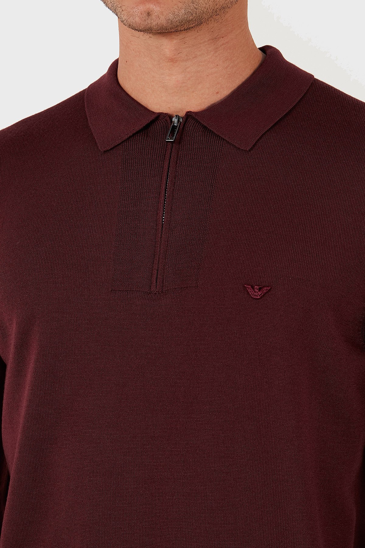 % 100 Yün Regular Fit Yarım Fermuarlı Polo Yaka Erkek Kazak EM001512 AF14158 U5086 BORDO