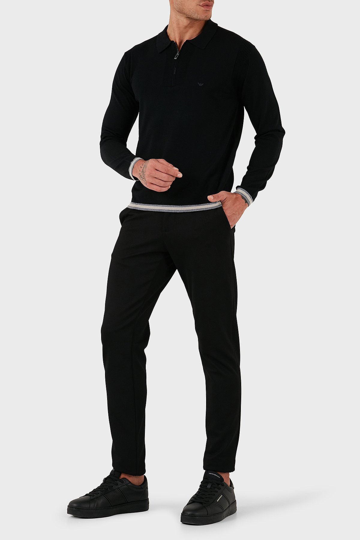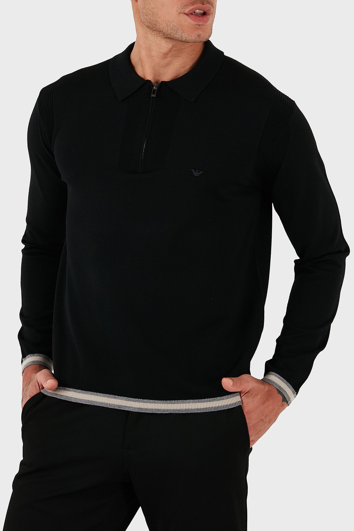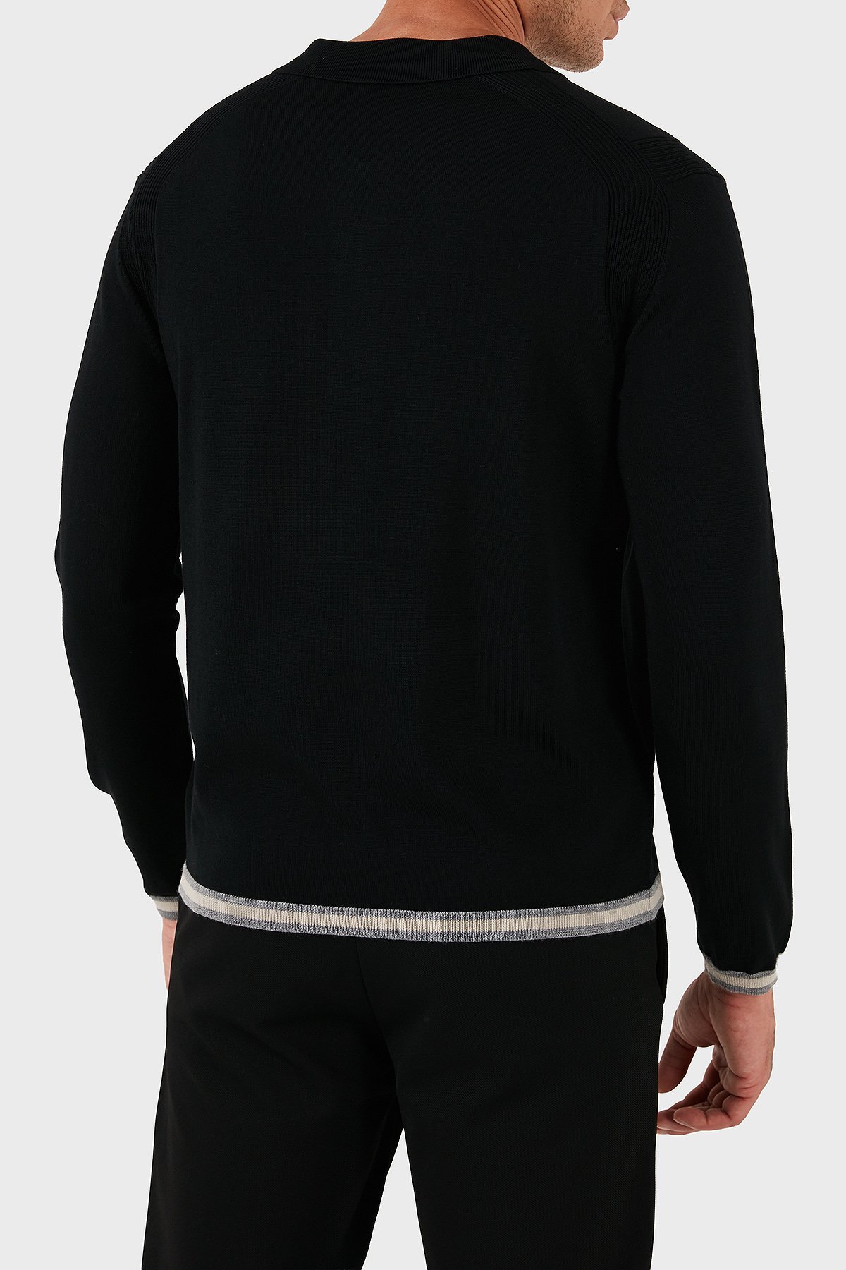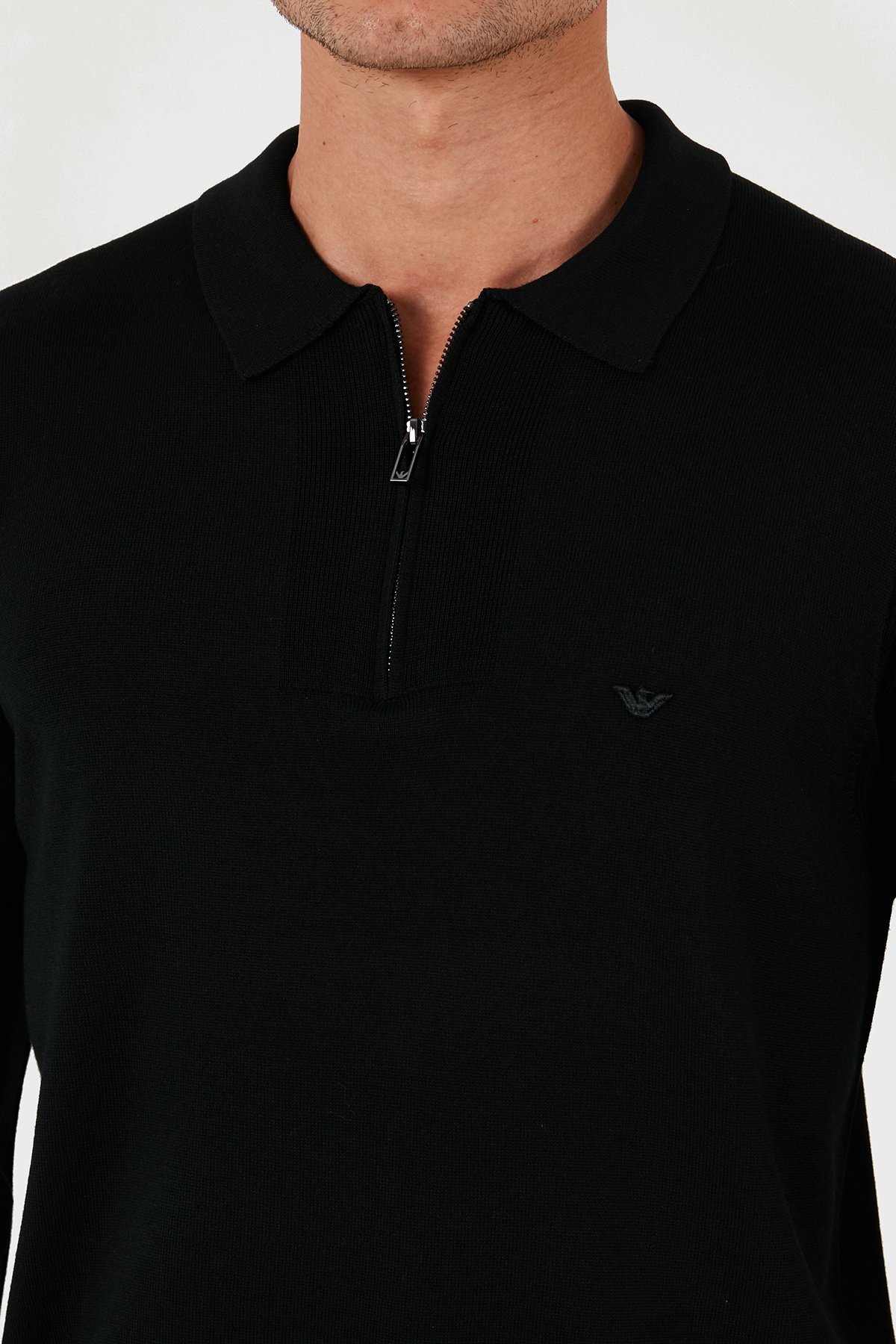 % 100 Yün Regular Fit Yarım Fermuarlı Polo Yaka Erkek Kazak EM001512 AF14158 UC001 SİYAH
