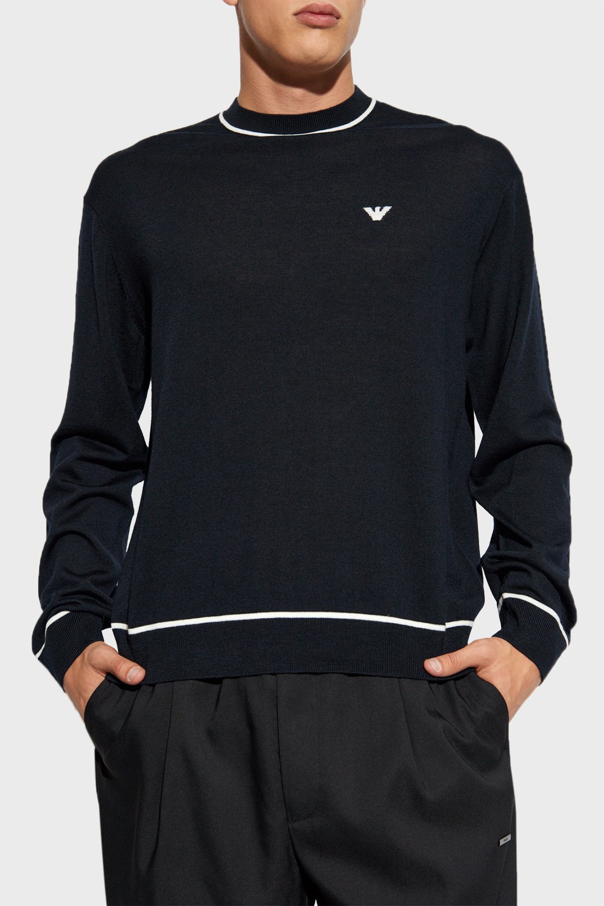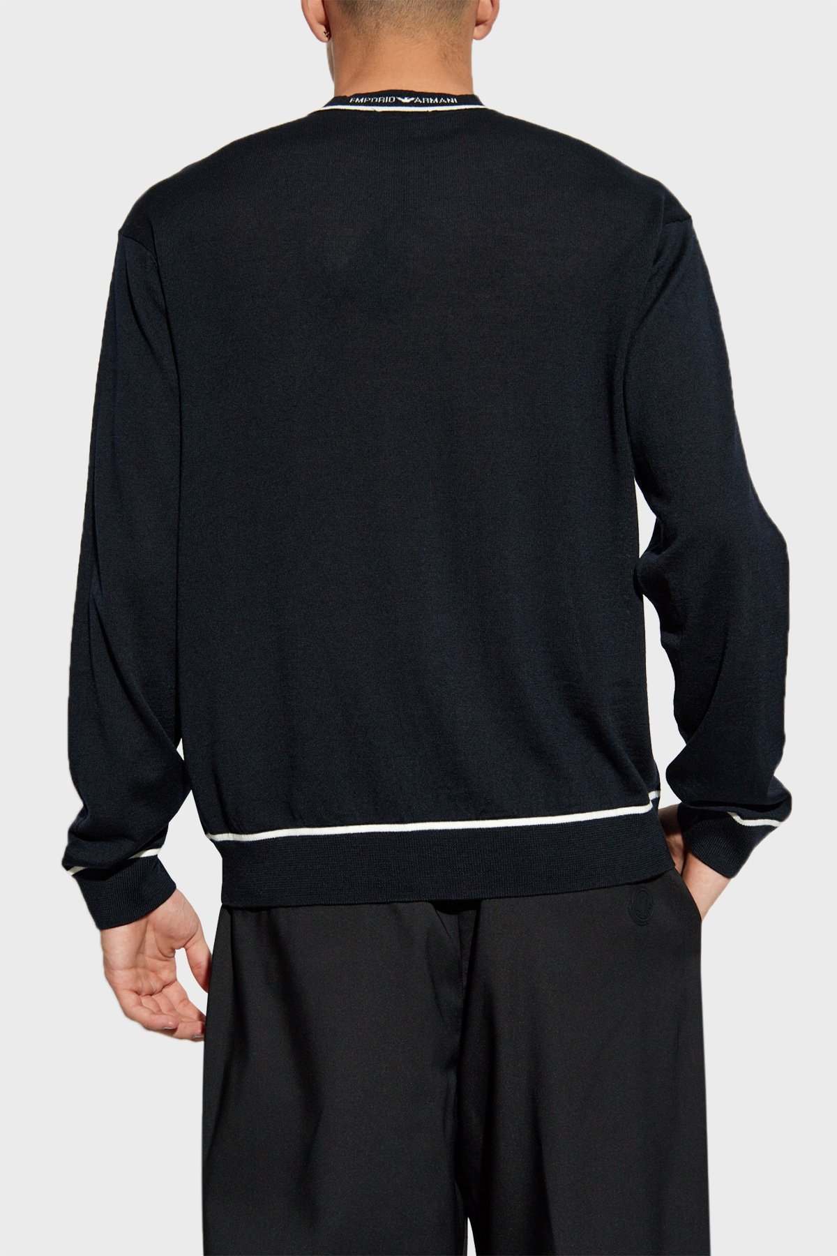 % 100 Yünlü Bisiklet Yaka Erkek Kazak 6D1MXH 1MJLZ F930 KOYU LACİVERT