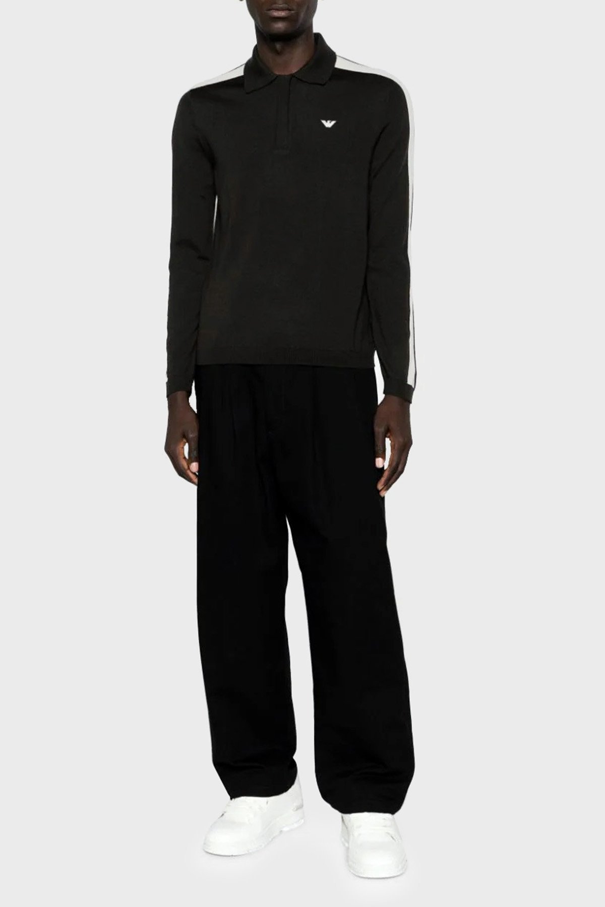 % 100 Yünlü Fermuarlı Polo Yaka Erkek Kazak 6R1MU1 1MMHZ 0999 SİYAH