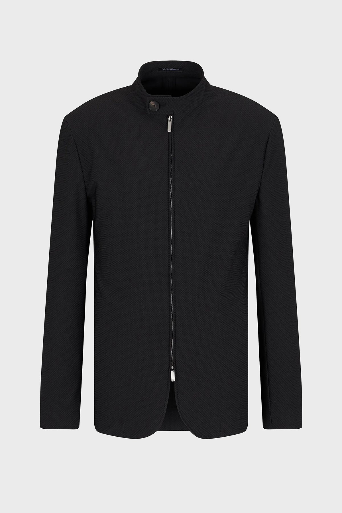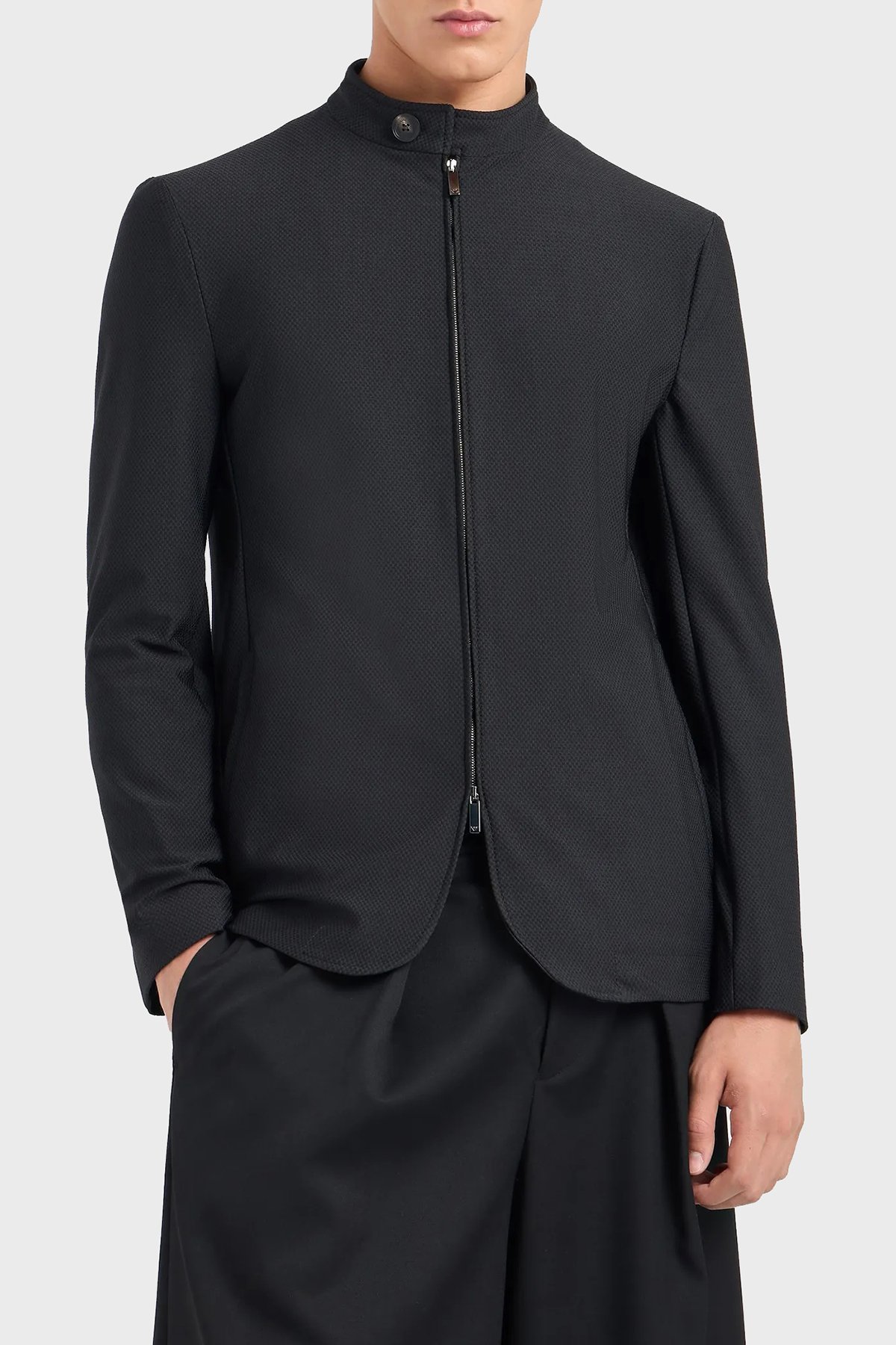 3D Efektli Regular Fit Çift Fermuarlı Düğmeli Dik Yaka Erkek Ceket EM000143 TE11109 UC001 SİYAH