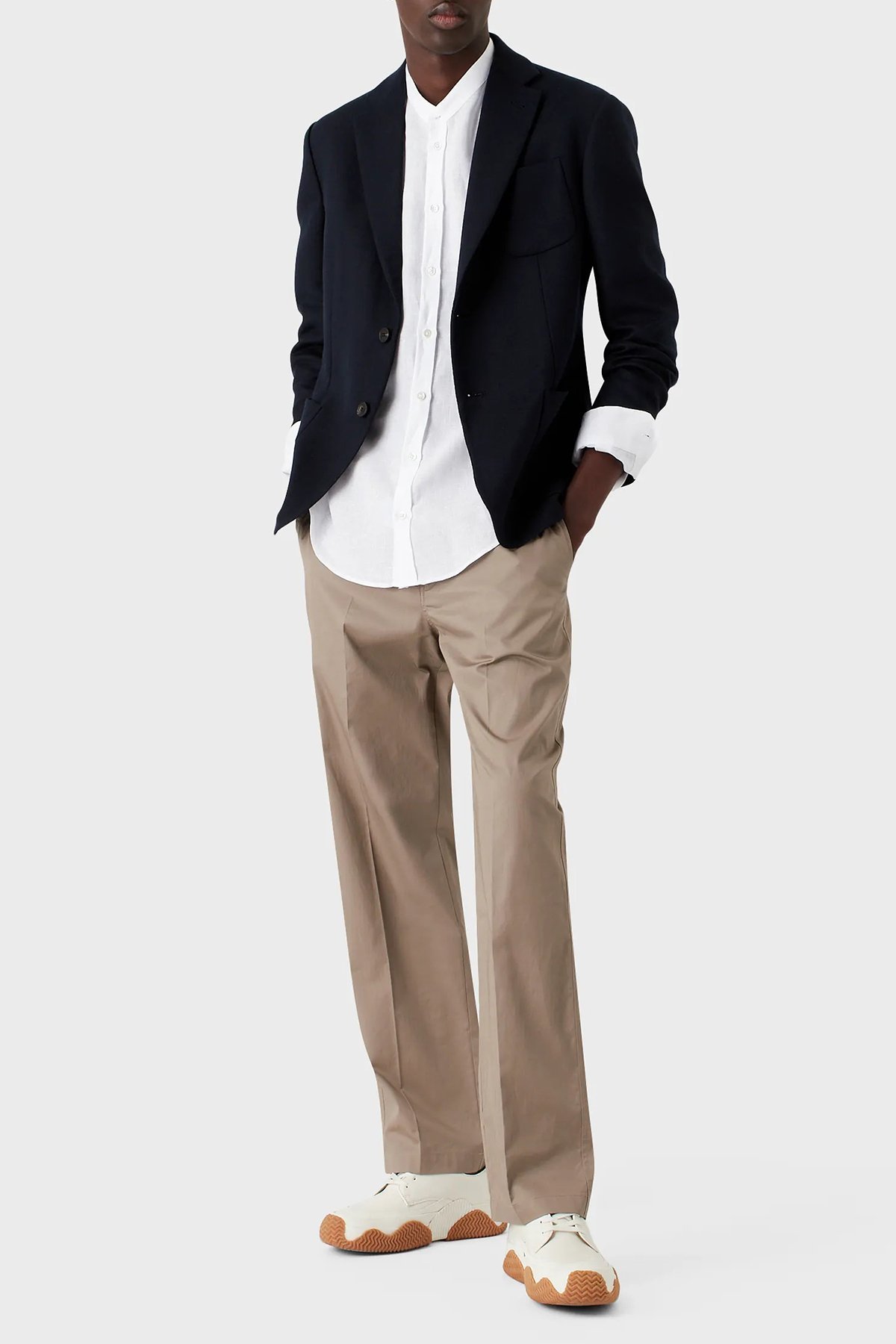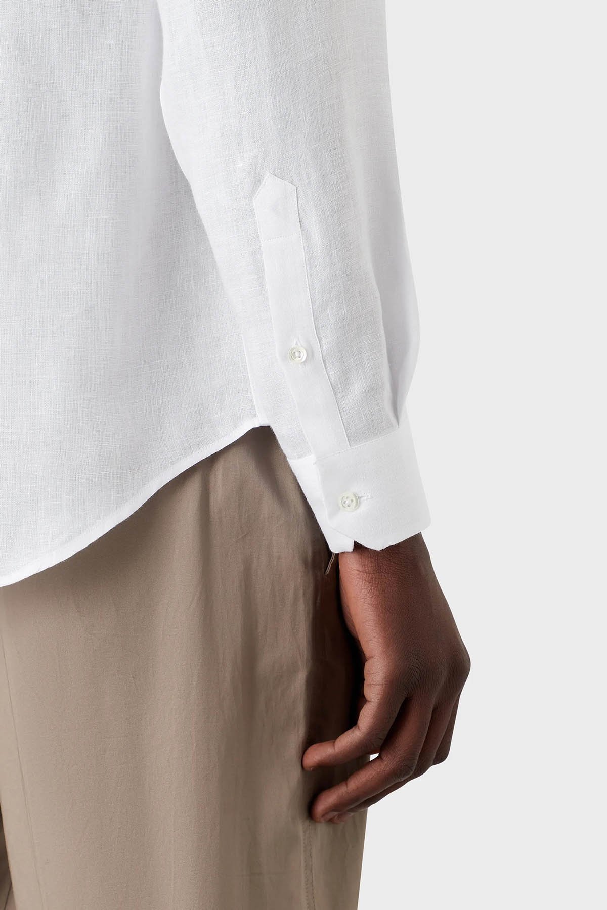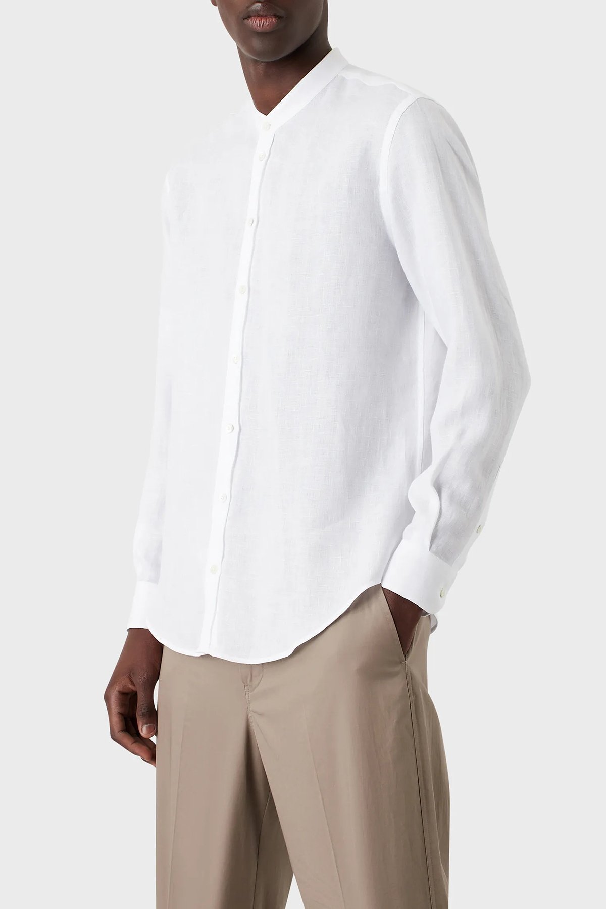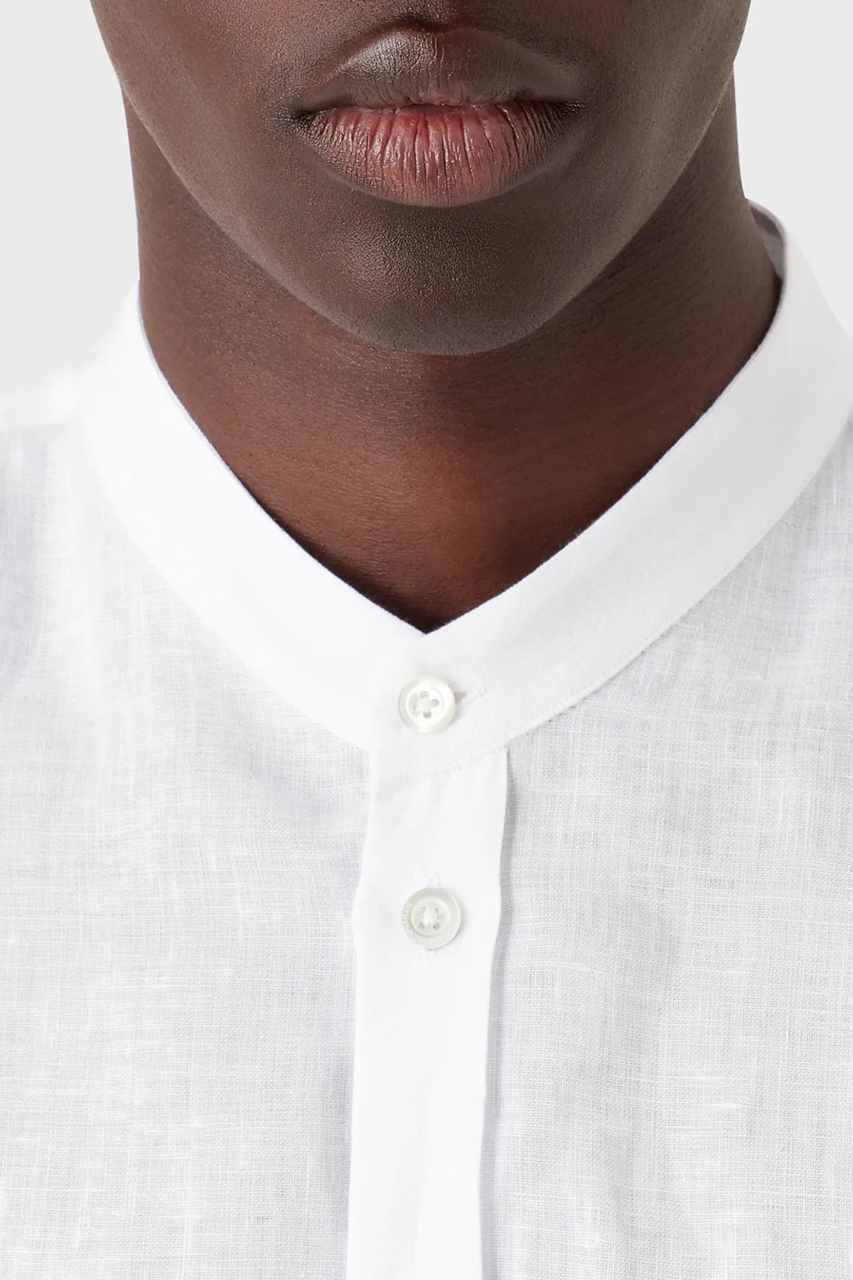 Bant Yaka Uzun Kollu % 100 Keten Erkek Gömlek D41SMG D10F9 100 BEYAZ