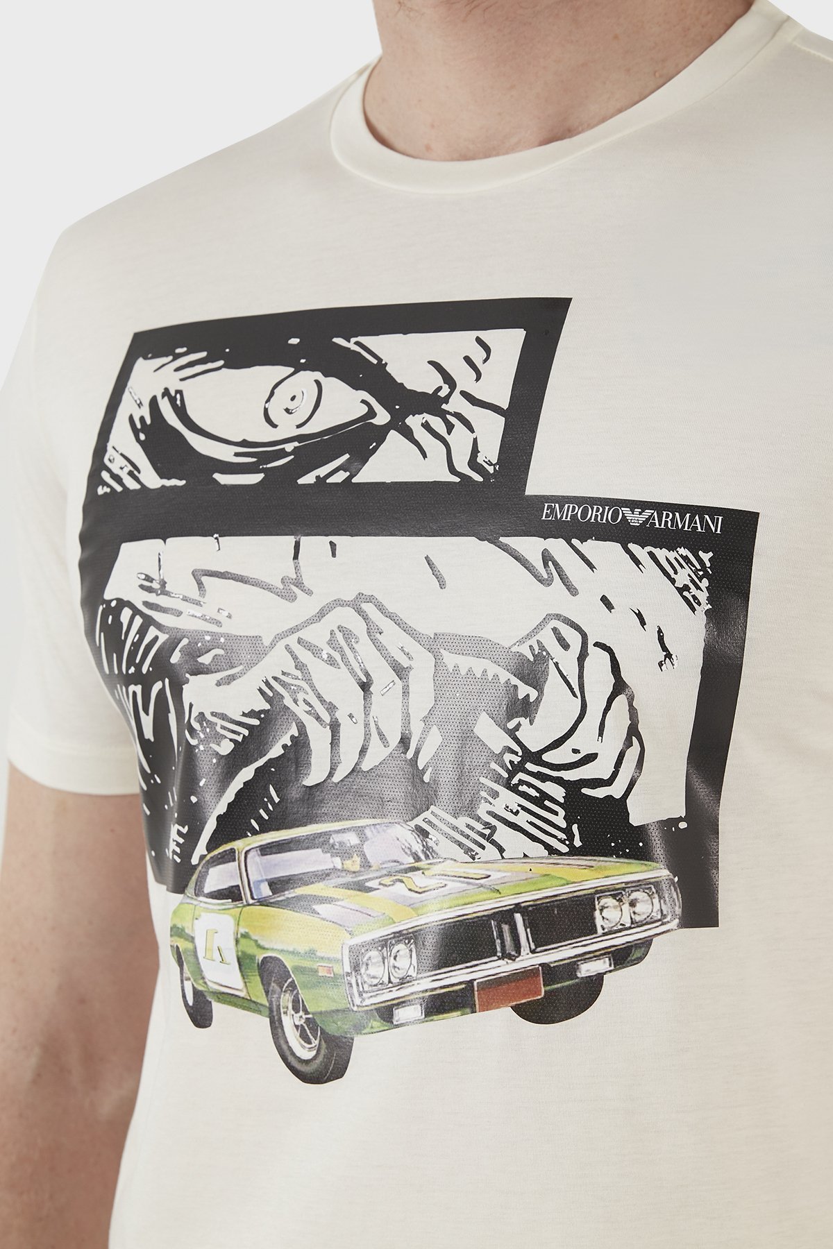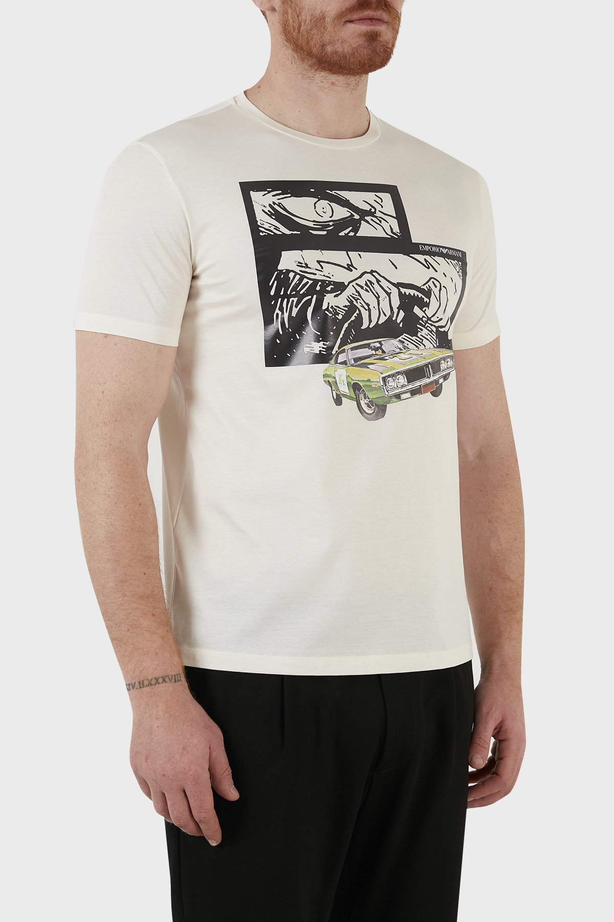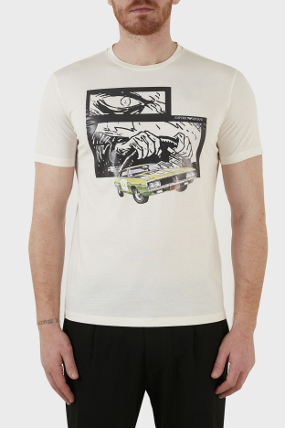 Baskılı % 100 Pamuk Bisiklet Yaka Regular Fit Erkek T Shirt 3L1T8P 1JW5Z F121 BEYAZ
