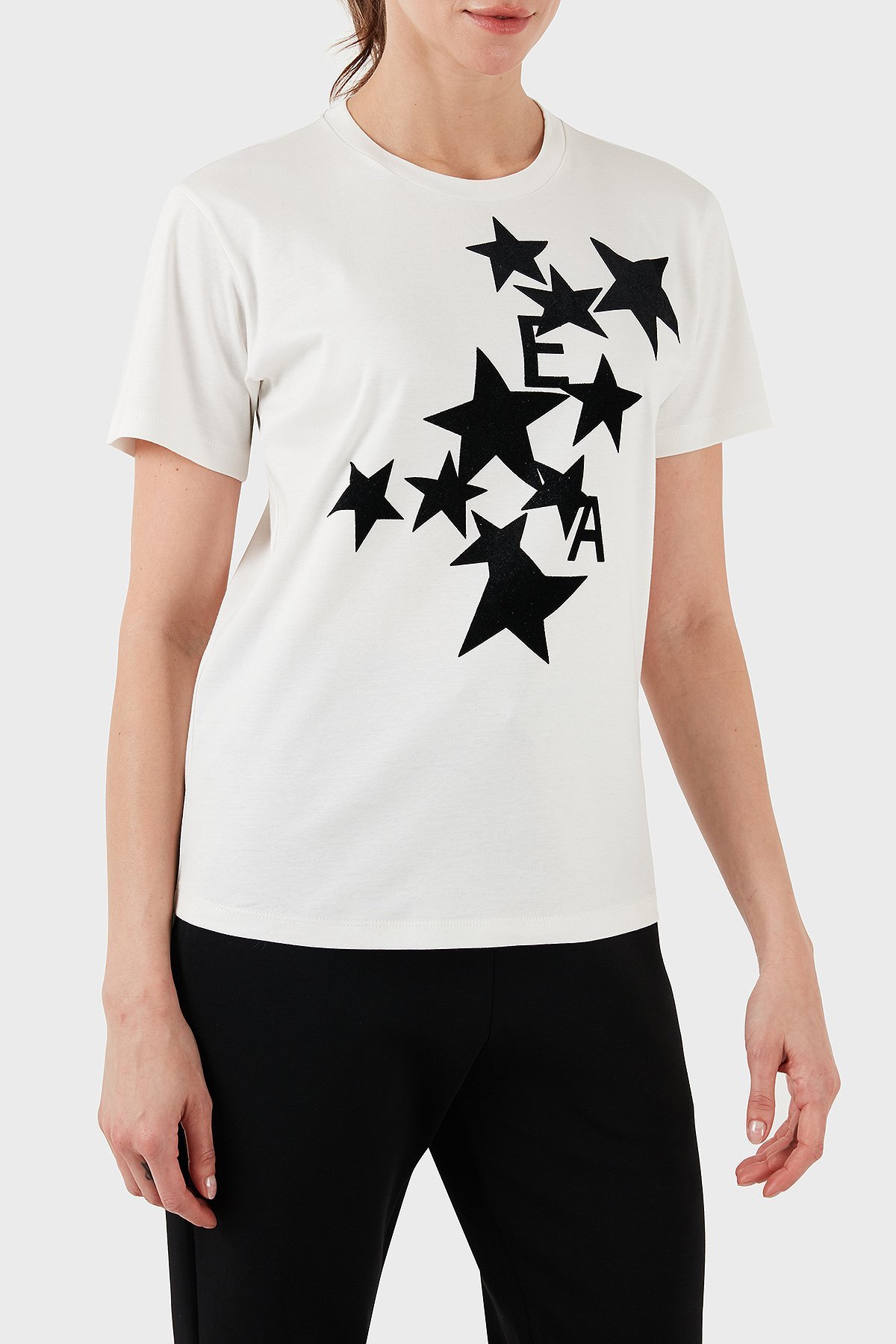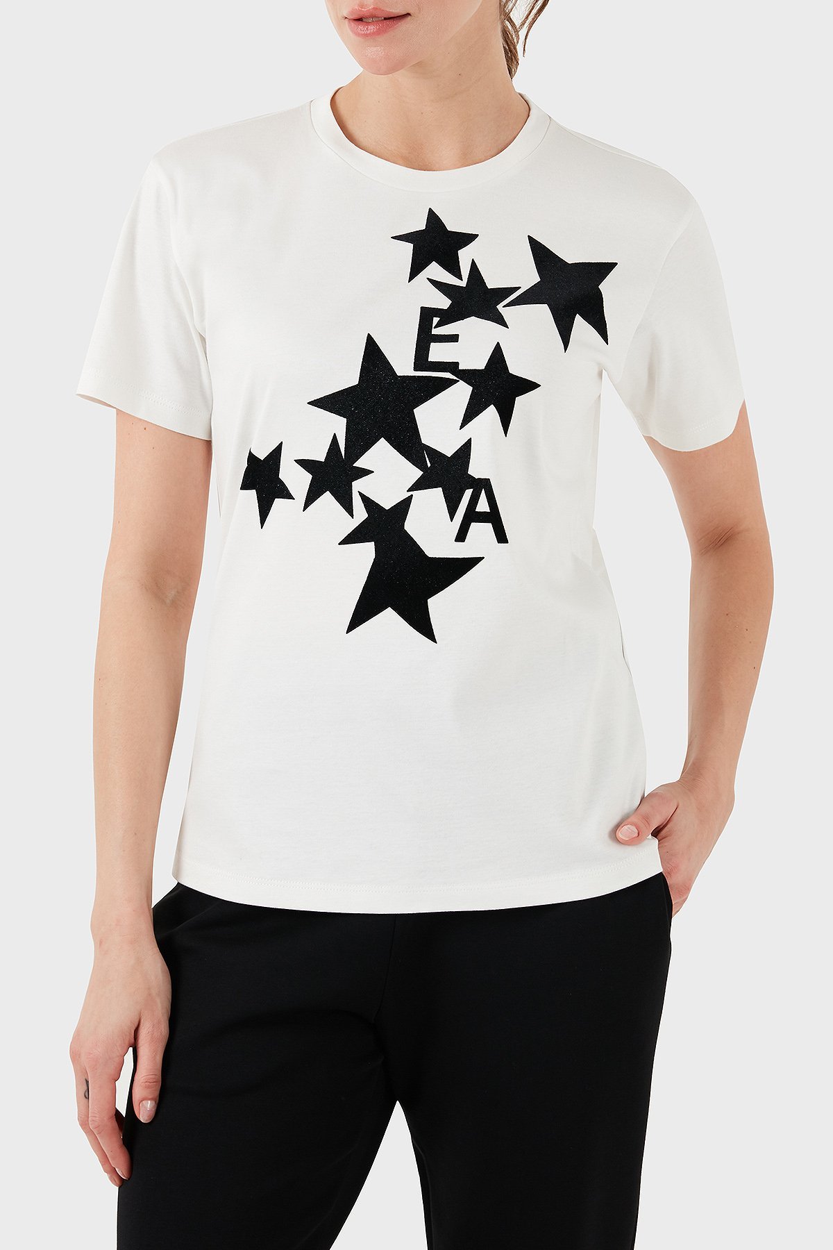 Baskılı % 100 Pamuk Regular Fit Bisiklet Yaka Bayan T Shirt 6D2T8B 2JIJZ 0101 BEYAZ